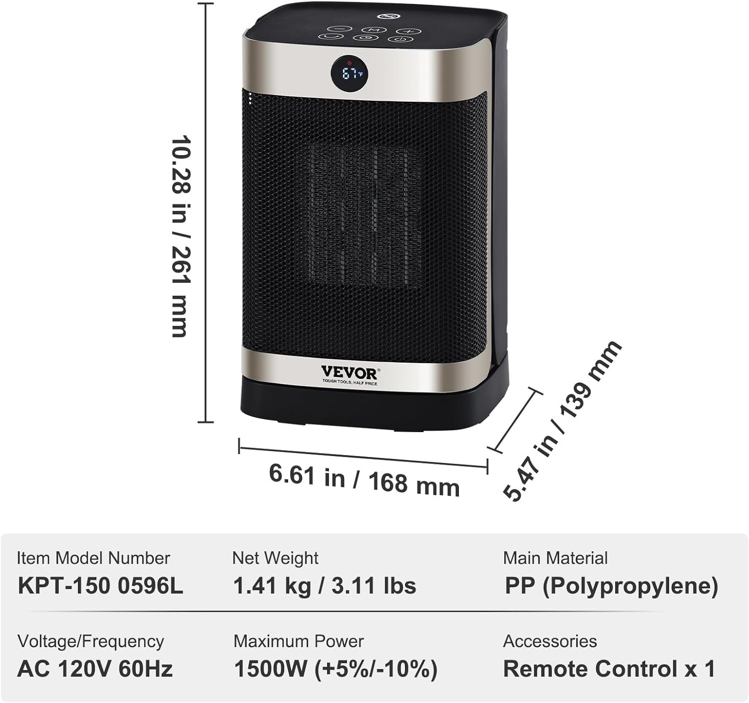 Be the first to review “VEVOR Electric Space Heater with Thermostat Remote Control, 2-Level Adjustable Quiet Ceramic Heater Fan, 10 in Tip-Over Shutdown Overheat Protection Small Heaters for Office Room Desk Indoor Use”