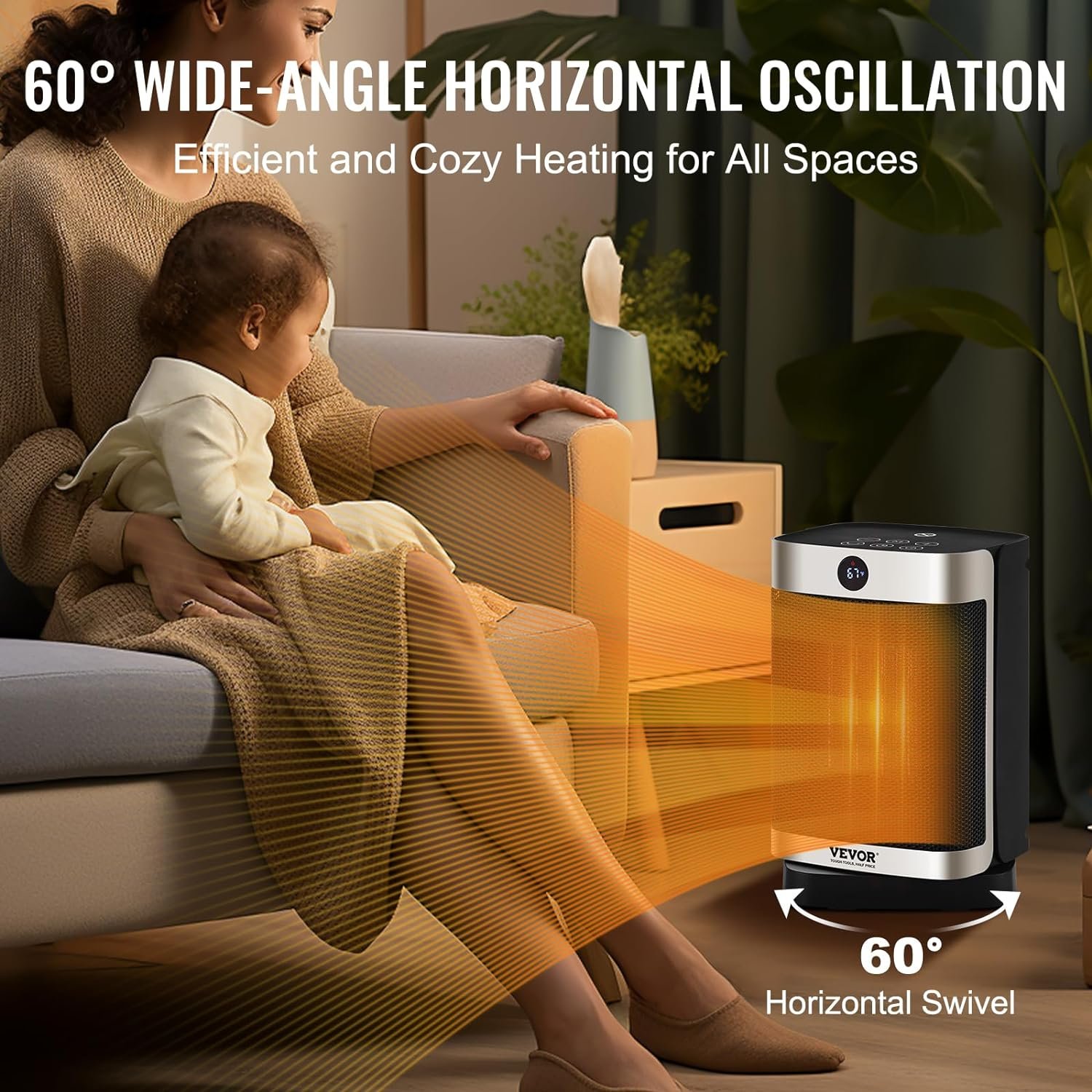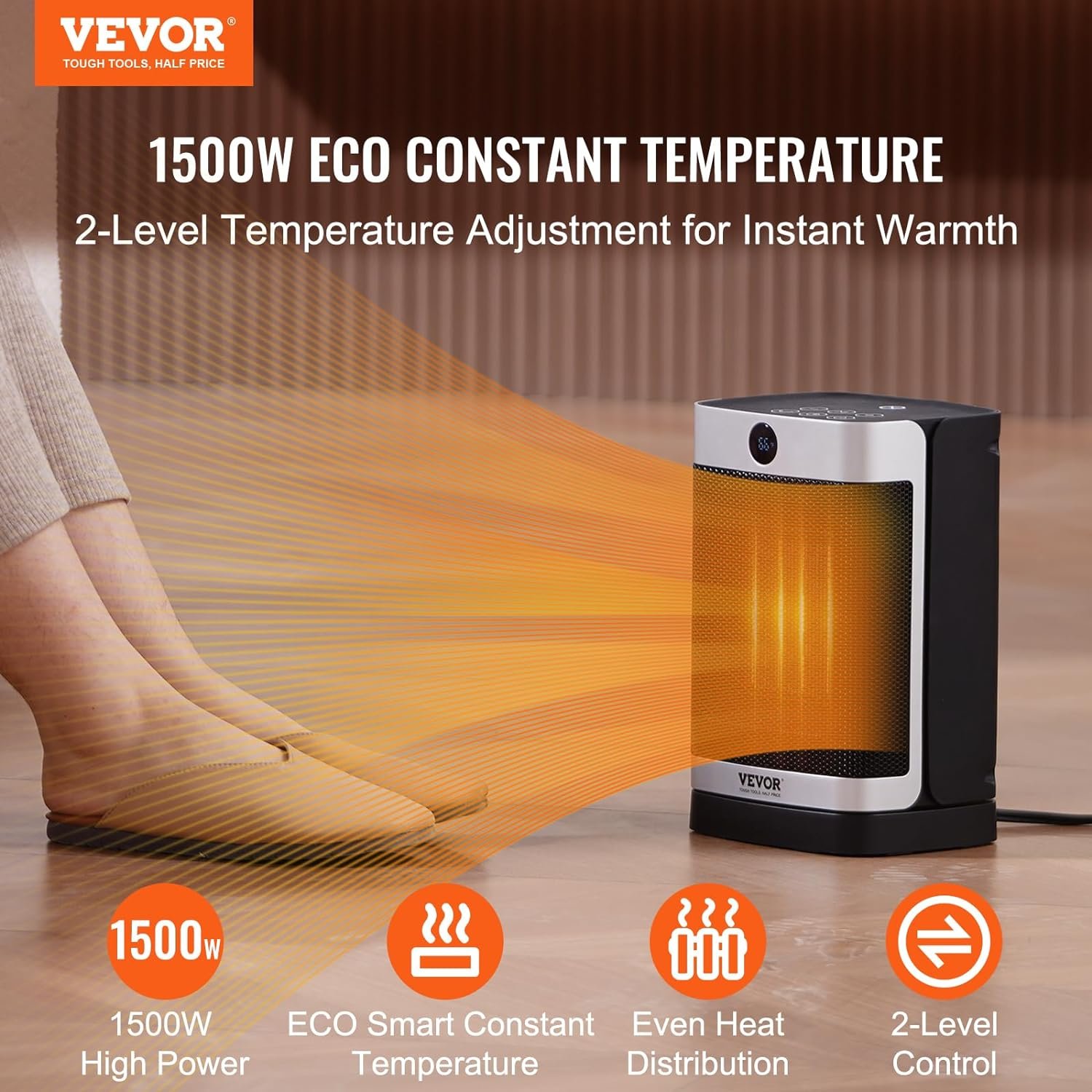 1500W Constant Temperature: Featuring precise temperature control with two settings of 1000W or 1500W, intelligent ECO constant temperature heating ensures even heat distribution. With 1500W high power, it heats up quickly, meeting your winter whole-house heating needs.
