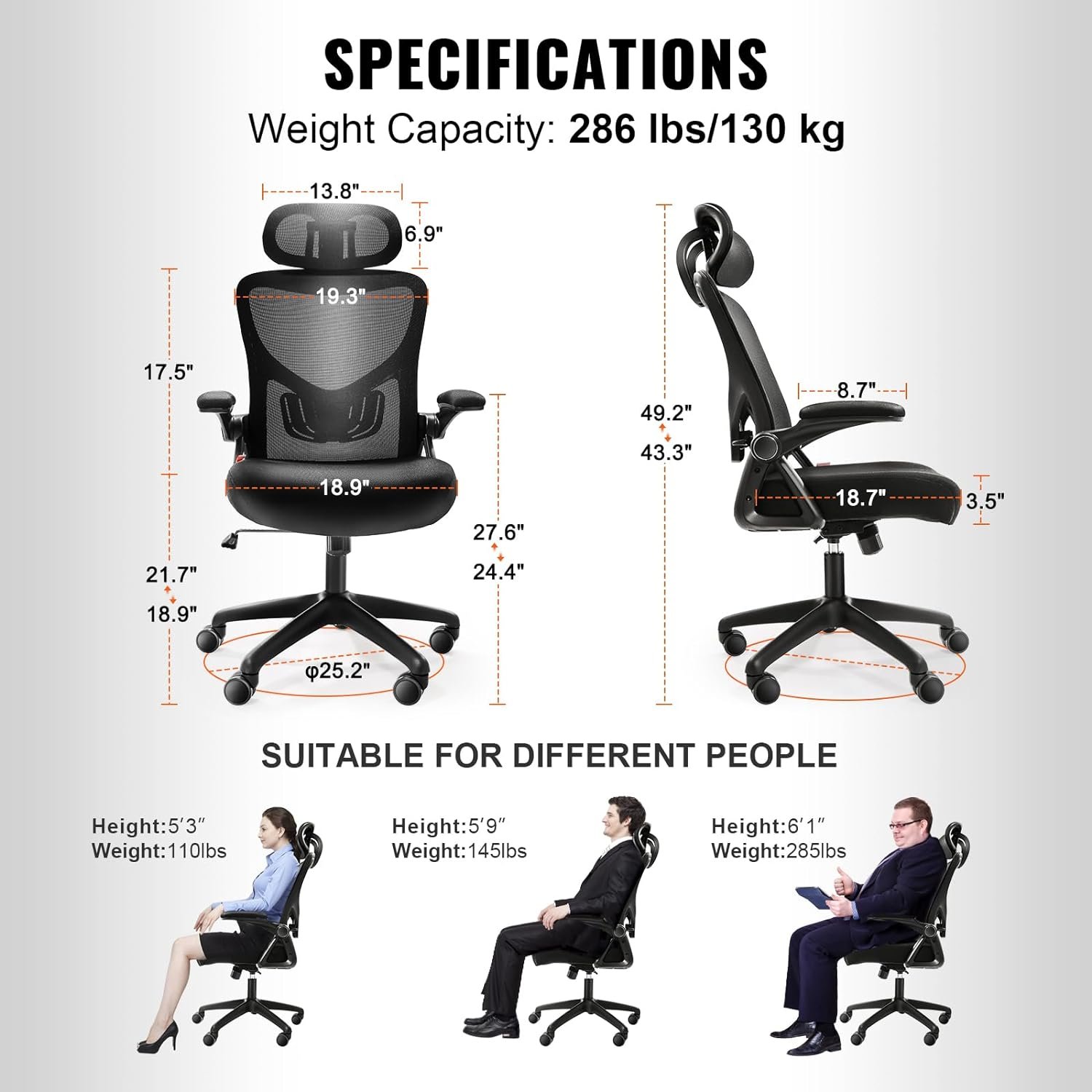 Multi-functional Use: Whether you have a regular desk, standing desk, or adjustable height desk, VEVOR mesh office chair can easily complement these workstations. It is a breeze to assemble with all hardware and tools included. Simply follow the chair instructions, and you can have it ready in just 30 minutes to enjoy.