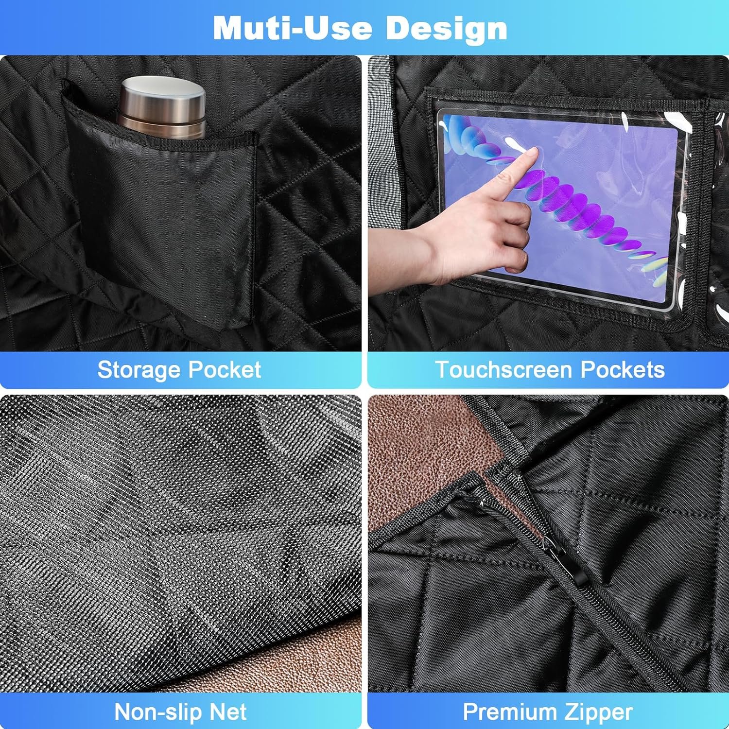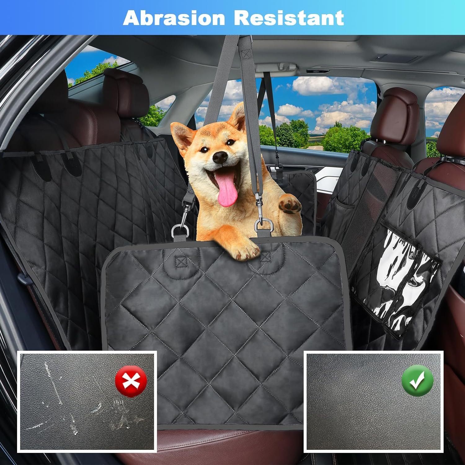 【Keep Safe and Nonslip】 Our Back Seat Cover has 4 levels nonslip protection design. 4 seat headrest fixed buckles, 2 seat anchors, slip-proof PVC backing and 2 side flaps hooks. Which can keep the covers always in place. Dog seat belt to prevent the dog from being injured during an emergency sudden brakingaps hooks. Which can keep the covers always in place. Dog seat belt to prevent the dog from being injured during an emergency sudden braking