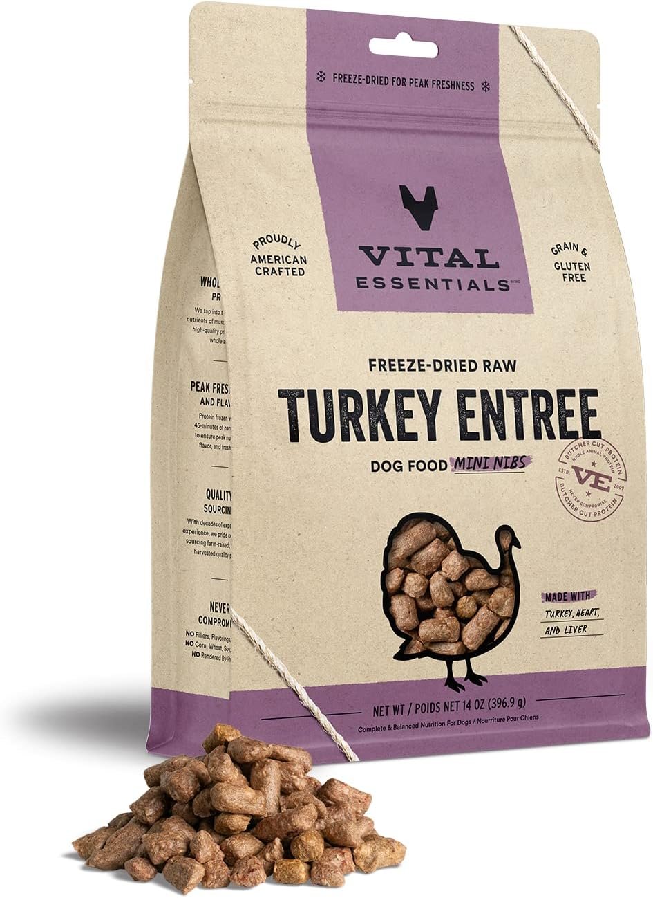 Vital Essentials Freeze Dried Raw Dog Food, Turkey Mini Nibs Entree, 14 oz