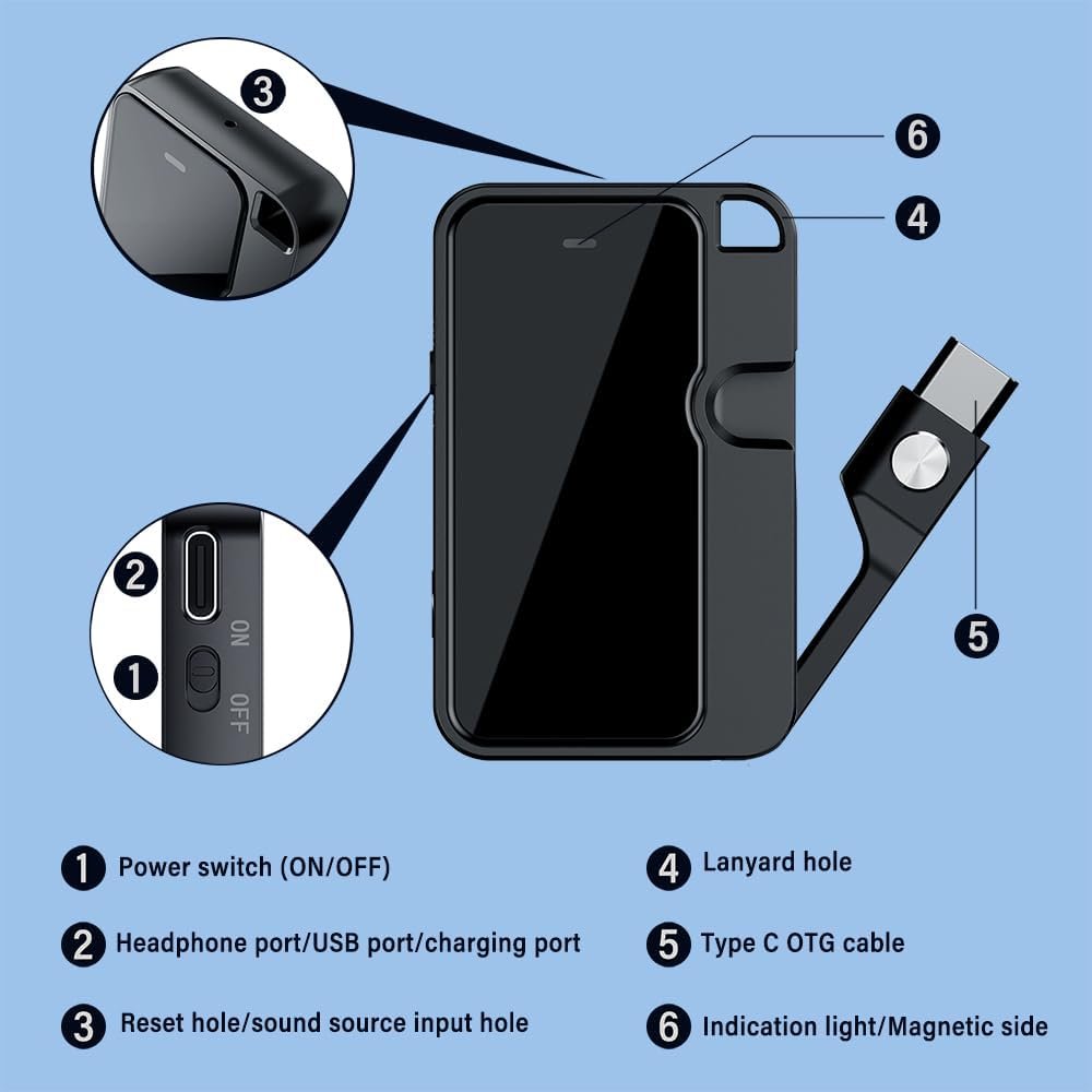 【Easy To Manage Recordings】-Set and save real timestamp setting before first use, which makes the recording file name by Year/Month/Day/Hour/Minute/Second, also be convenient for daily management. You can easy to playback, backup and delete recordings on computer or smart phone. The recorder come with a OTG accessory to connect your phone to open the OTG function.