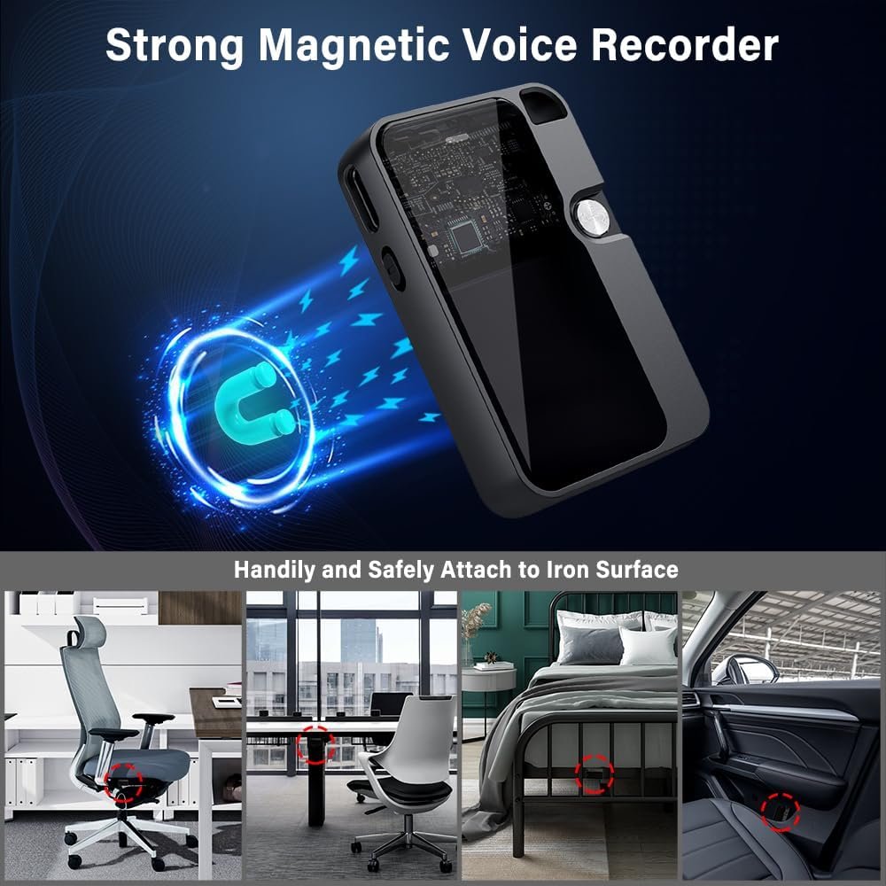 【Magnet Side】-This voice recorder has a magnet side, it can be attached to iron surface, apply to interview, meeting, class, concert etc. Ideal for anyone who loves to record something in your life, or those honey with memory difficulties.