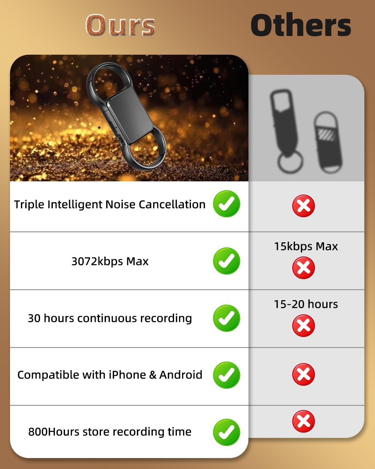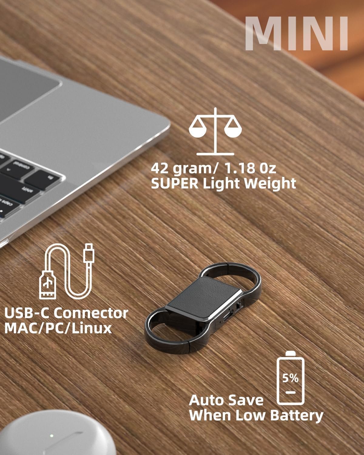 【Mini Design】: Compact and practical recorder device is designed for on-the-go use, taking minimal space in your bag. Perfect for the cosmetic bag, wallet, schoolbag, and can be hung on the belt, backpack, car keychain.