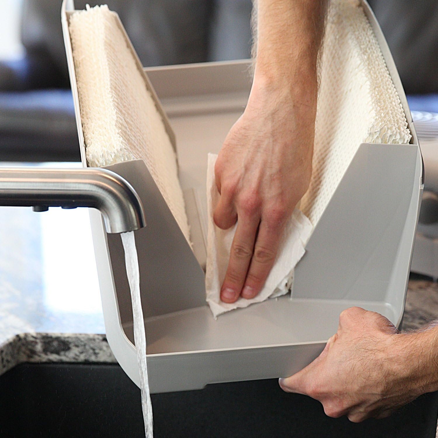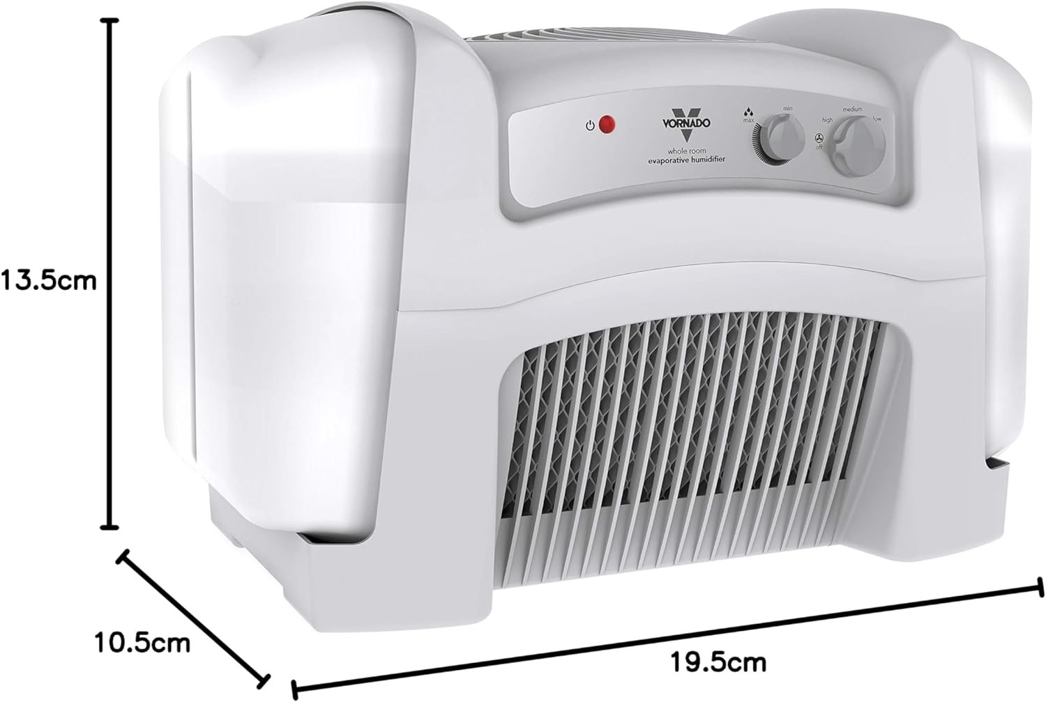 OPTIMUM PERFORMANCE — Deep-pitched blades pull large volumes of dry air through two humidifying filters, and then circulate the humidified air throughout the room using Vornado’s signature Vortex Action, providing complete and uniform humidification in spaces up to 1, 000 sq. ft.