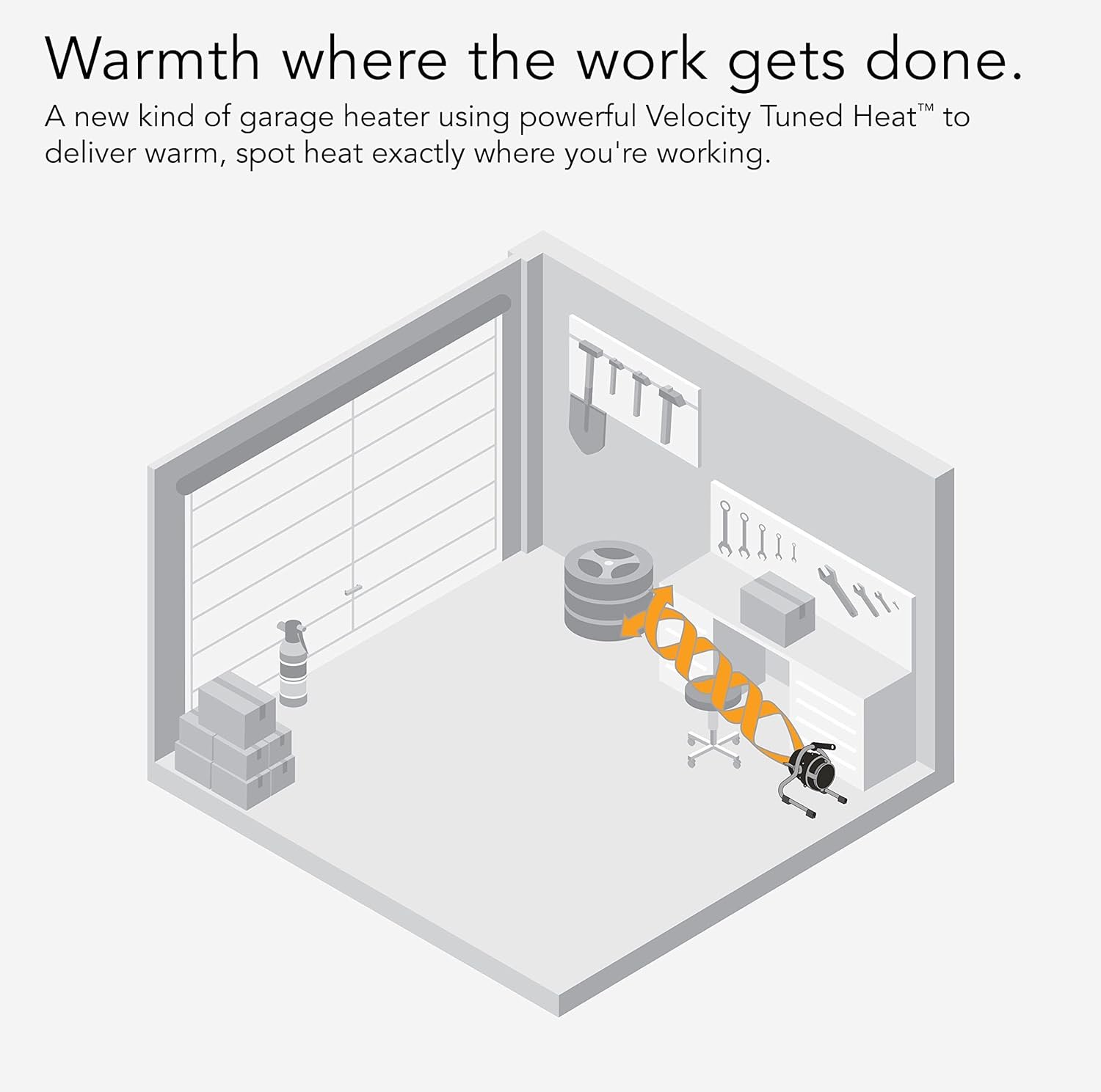 A new kind of workshop heater using powerful Velocity Tuned Heat to deliver warm, spot heat exactly where you’re working. While it won’t heat your entire garage, the Velocity HD’s efficient size, rugged grab-and-go construction and 30° head tilt make it easy bring the heat to where you need it. The sturdv, easv-to-clean dust filter snaps on and off with little effort. A 3-stage safety protection system with 8-foot grounded cord provides additional peace-of-mind in the rough-and-tumble workshop environment. Hotter. Faster. Farther. Tough enough for the workshop, Velocity HD delivers warmth where the work gets done.
