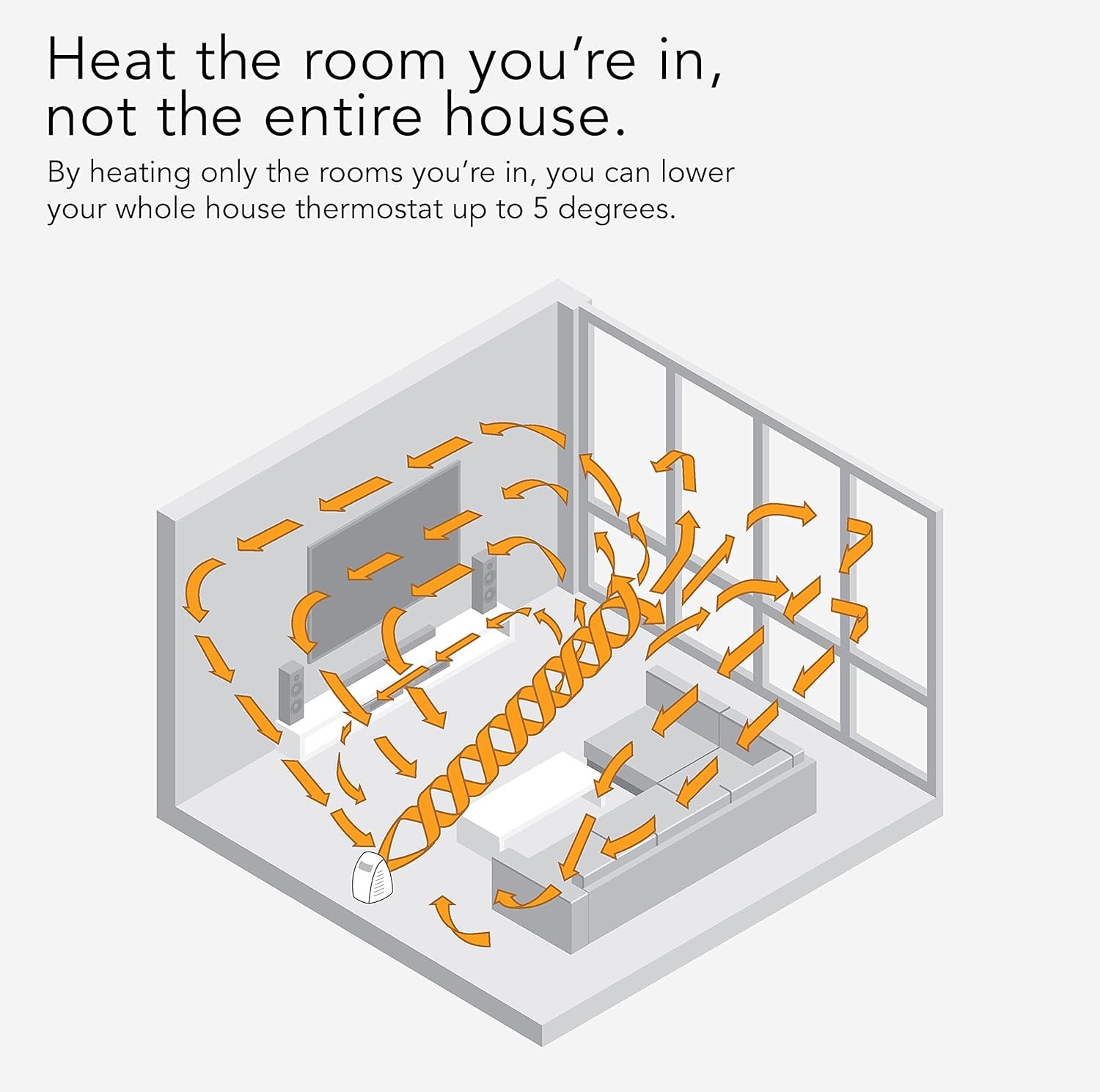 HEAT DIFFERENTLY — Gently heat all in the air in a small to medium-sized room through vortex air circulation without using intense heat, similar to how a forced air furnace works, just on a smaller scale..Heating Coverage:2000-3000 sq.ft.