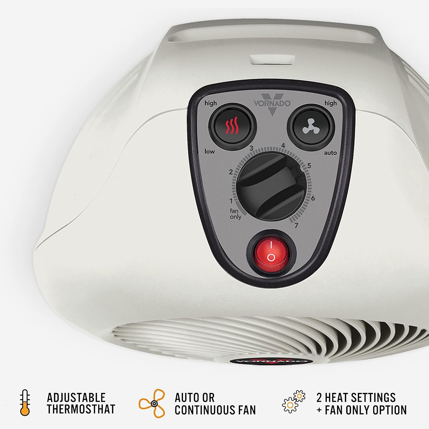 HEAT EFFICIENTLY — Select between the 2 heat settings (Low/750W, High/1500W) and a fan only option to tailor heat output and energy consumption.