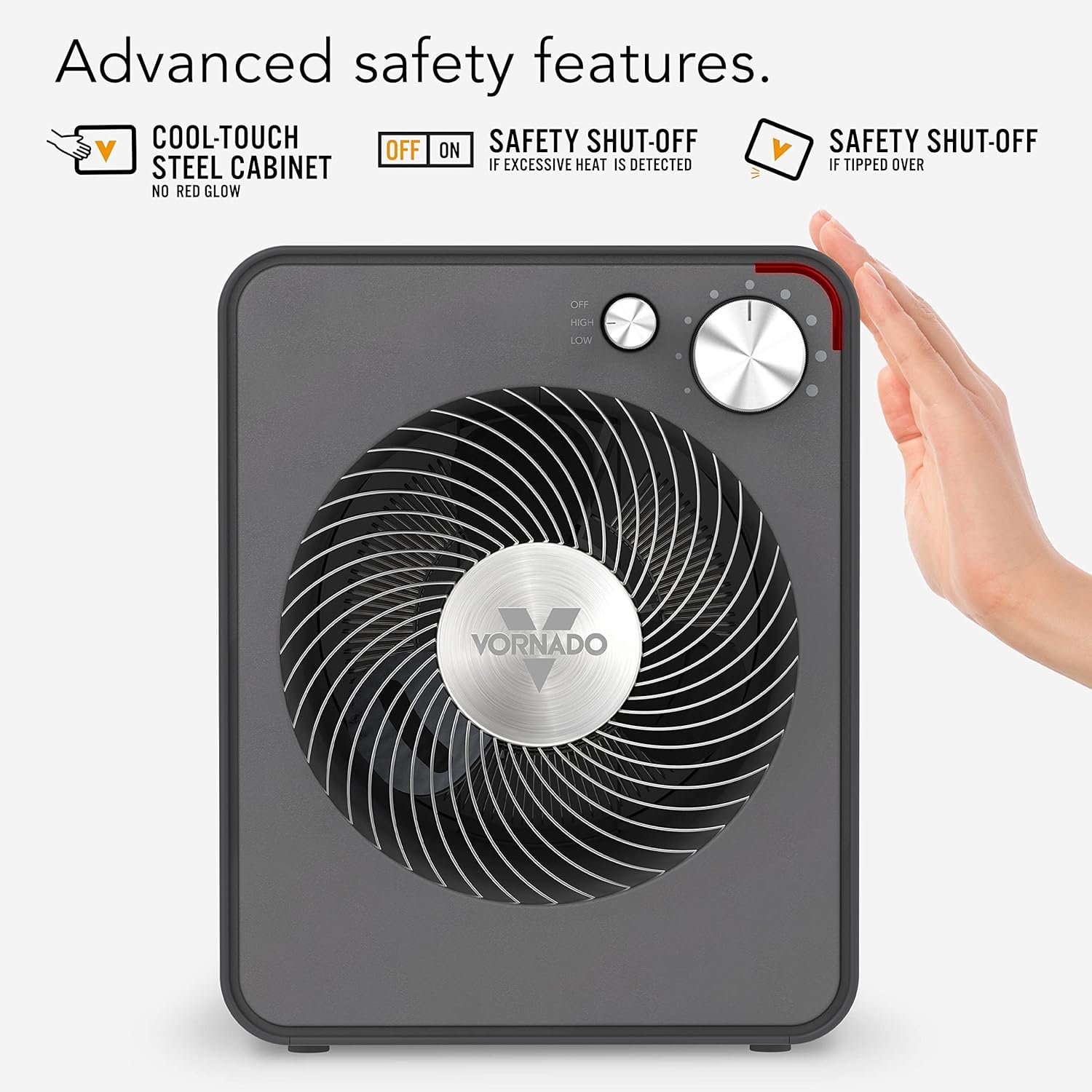 HEAT SAFELY — Advanced safety features include a cool-touch steel case, tip-over protection, and automatic safety shut-off system for worry-free use.