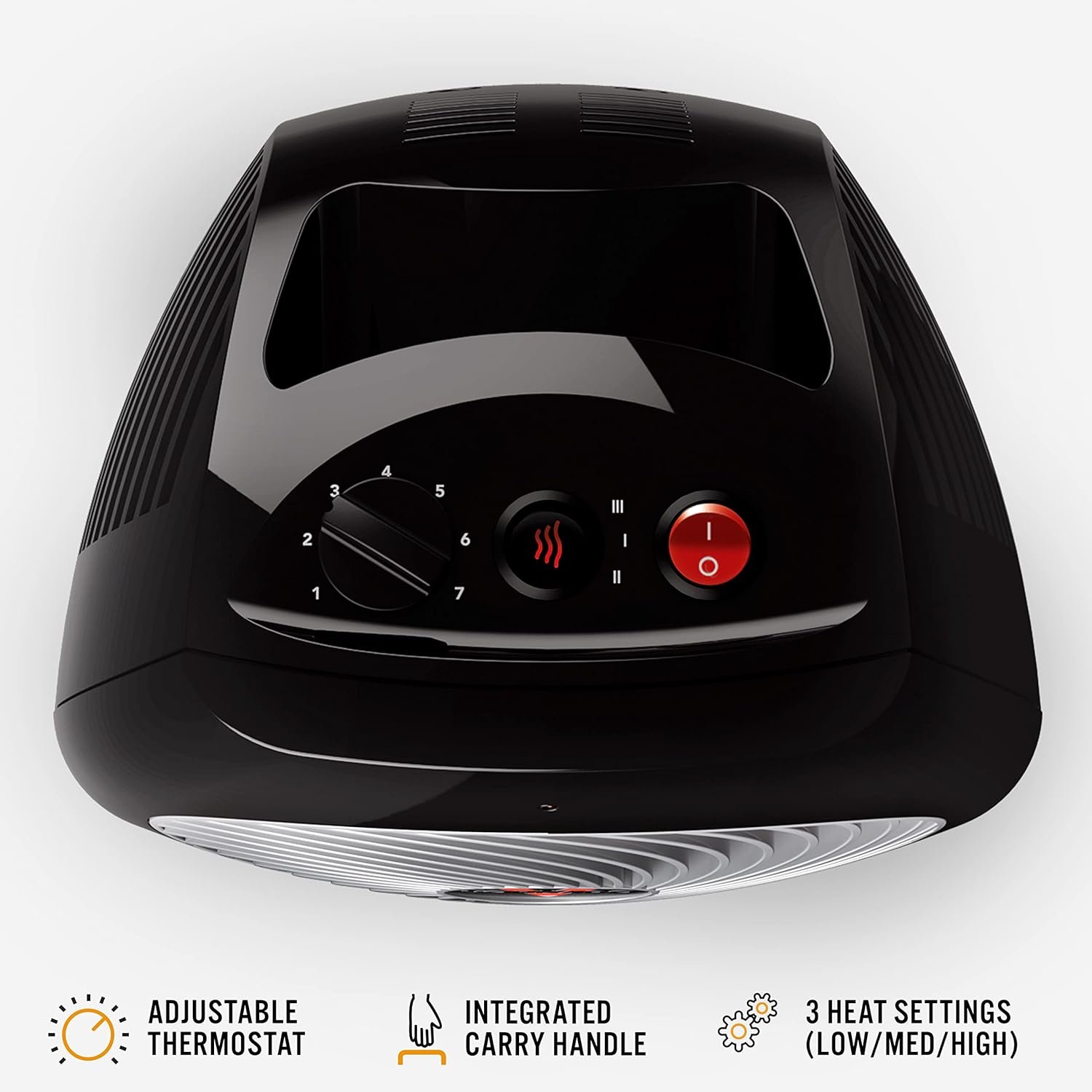 Product 2: HEAT EFFICIENTLY — 3 quiet heat settings (Low/750W, Medium/1125W, High/1500W) to tailor heat output and energy consumption.