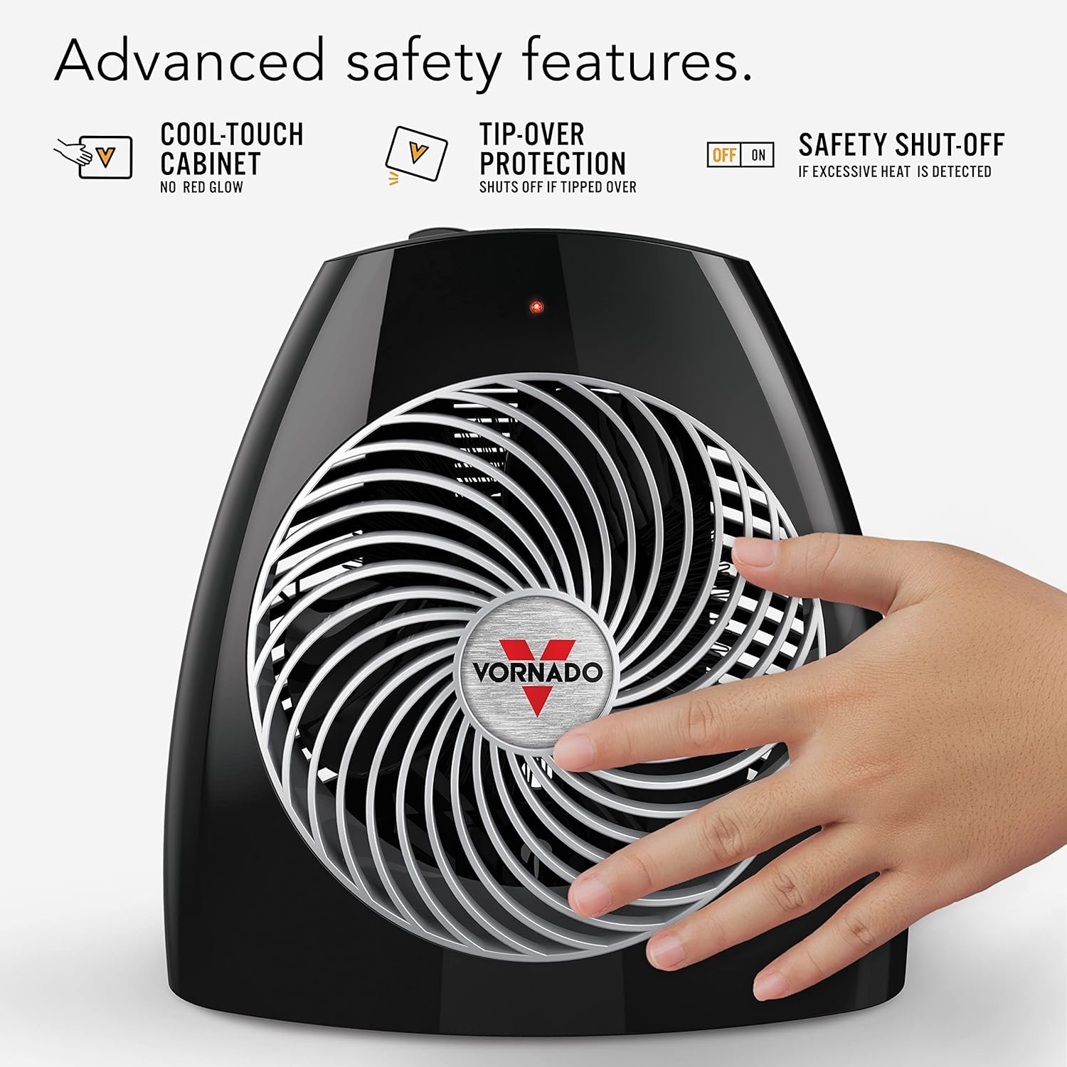 Vornado MVH Space Heater with 3 Heat Settings, Adjustable Thermostat, Tip-Over Protection, Auto Safety Shut-Off System, Indoor Use, Whole Room, Black