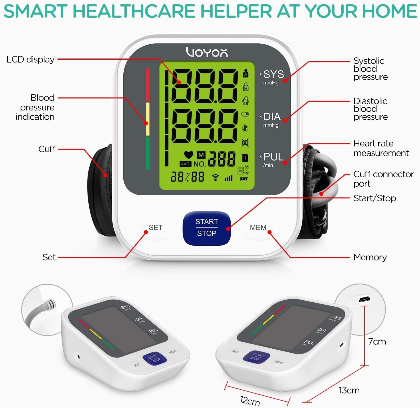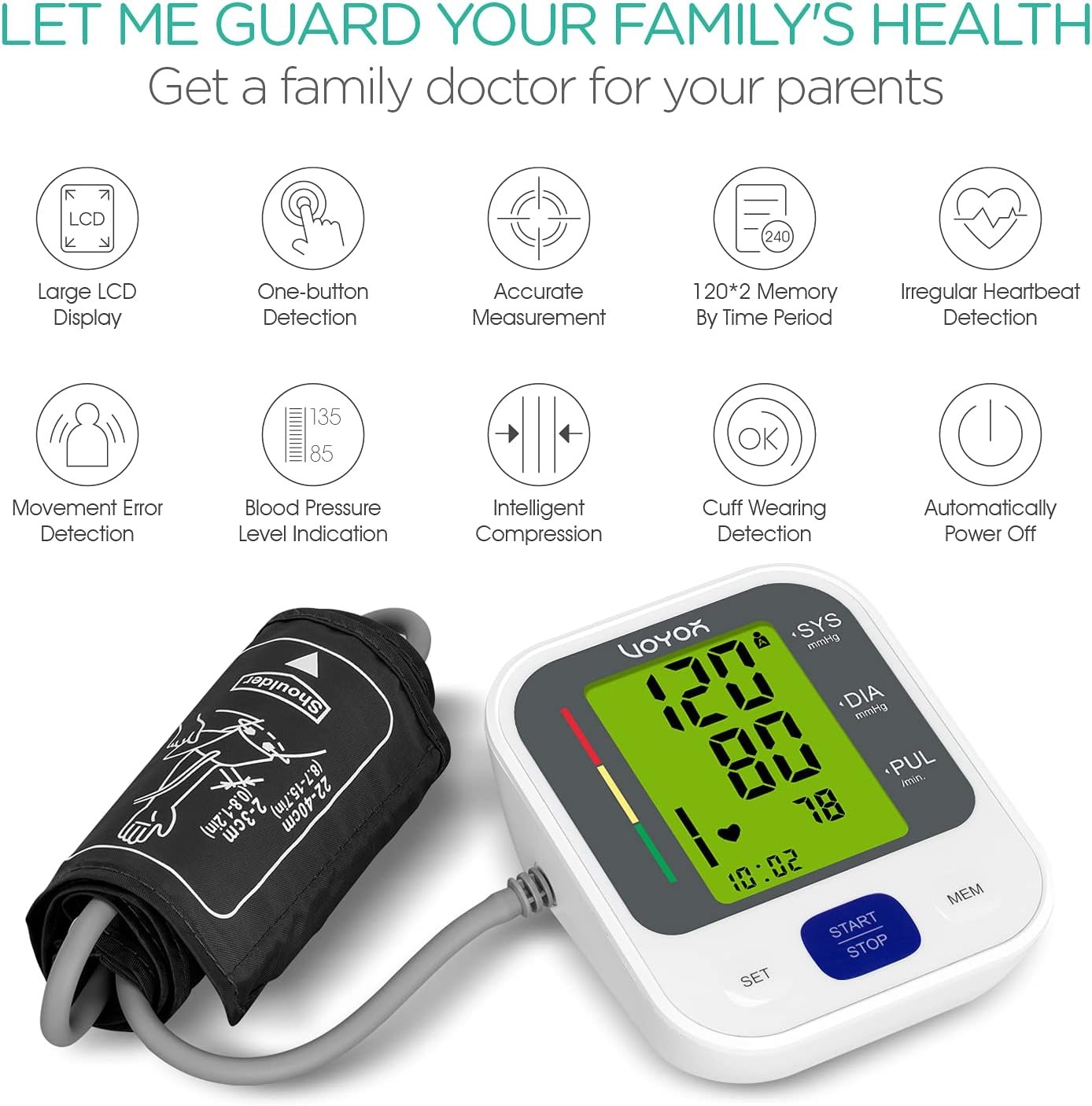 2 Power Supply & Auto Shut-Down – VOYOR blood pressure monitor supports USB(USB Cable included)and battery power supply, making it convenient and portable. It automatically turns off when not in use for one minute, very energy efficient.