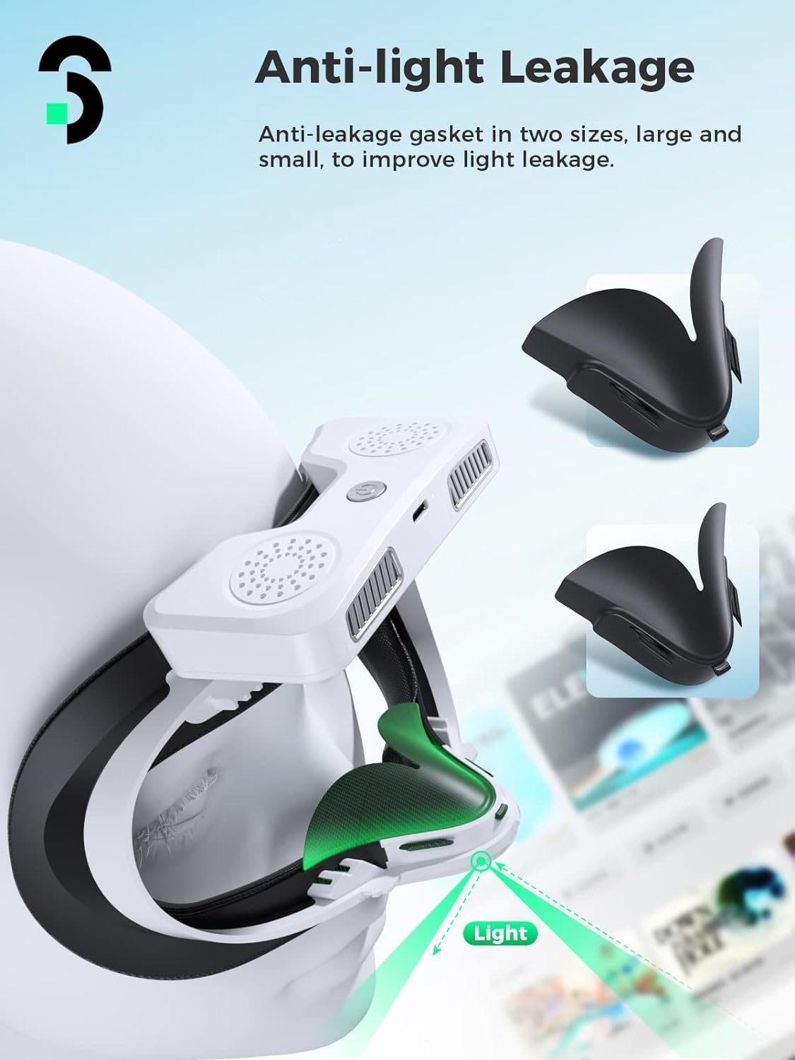 Comfortable Face Pad: This fan compatible with oculus is made of TPU leather for a softer and more comfortable wearing experience, easy to clean and breathable, reducing sweat and odor. The ergonomic nose bridge anti-leakage pads ensure comfortable use and prevent light from entering, effectively improving the problem of light leakage, and provide two sizes of anti-leakage pads, large and small, suitable for different people. The fan cooler cannot be used with glasses.