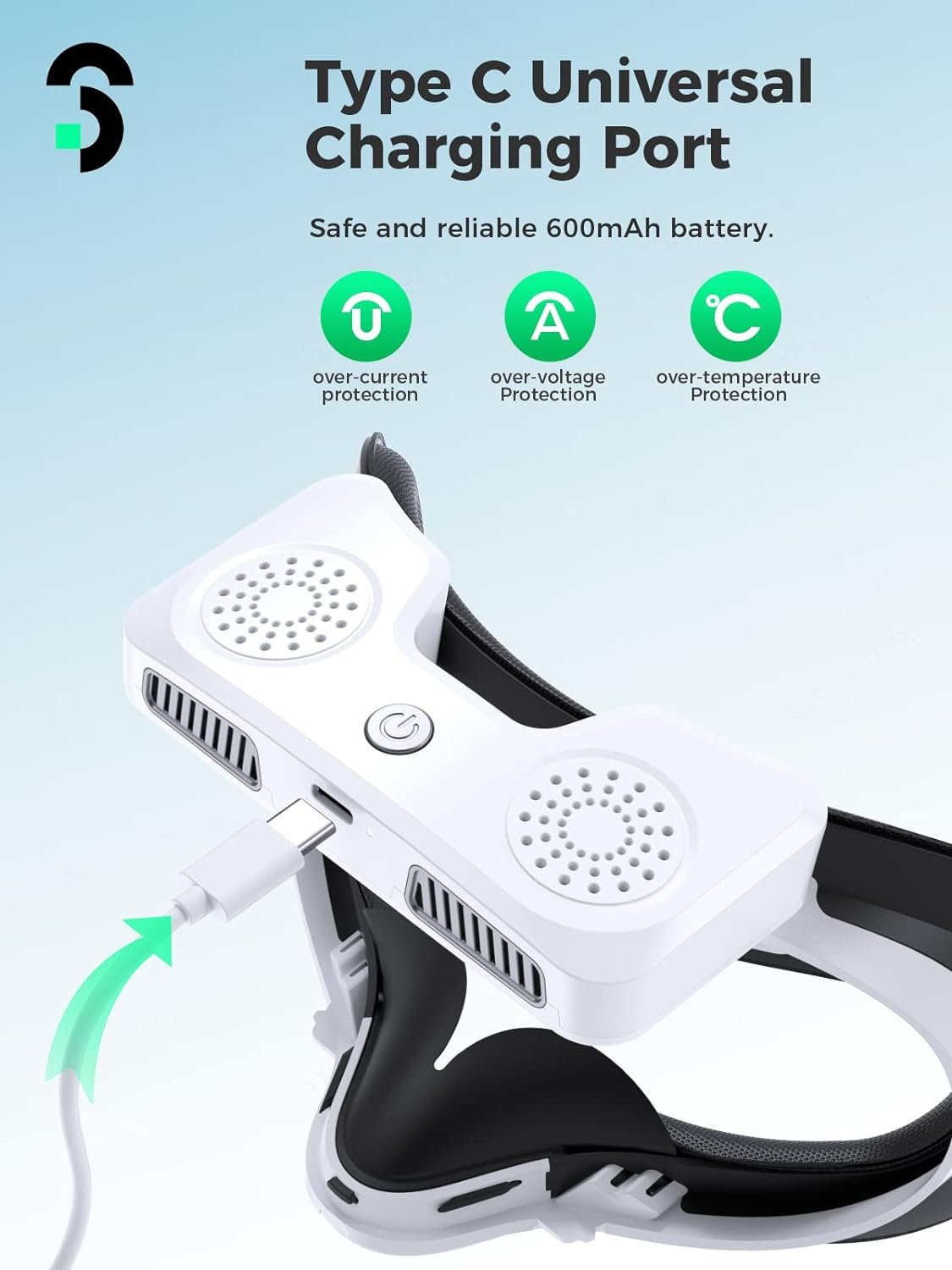 VR Cooling Fan Compatible with Meta/Oculus Quest 2, SOOMFON Upgraded Face Pad with Double Cooling Fan System and Five Ventilation Modes, Accessories to Relieve Lens Fogging and Hot Air