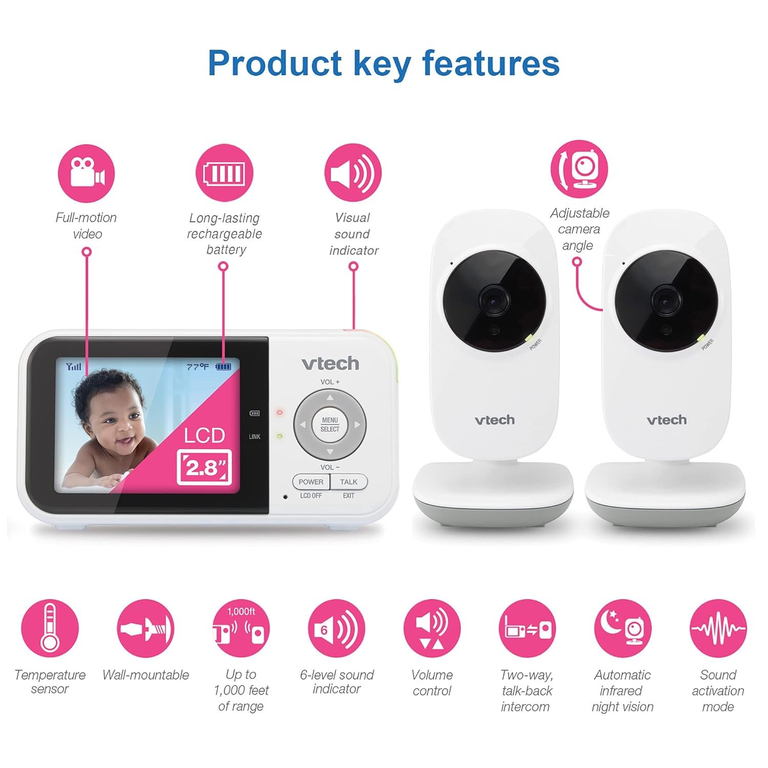 💖2.8″ Display with Temperature Indication – Clearly see every little move right from the parent unit. Besides, the built-in temperature sensor on the camera will send alert to the parent unit. Let you know when it’s time to adjust the thermostat.