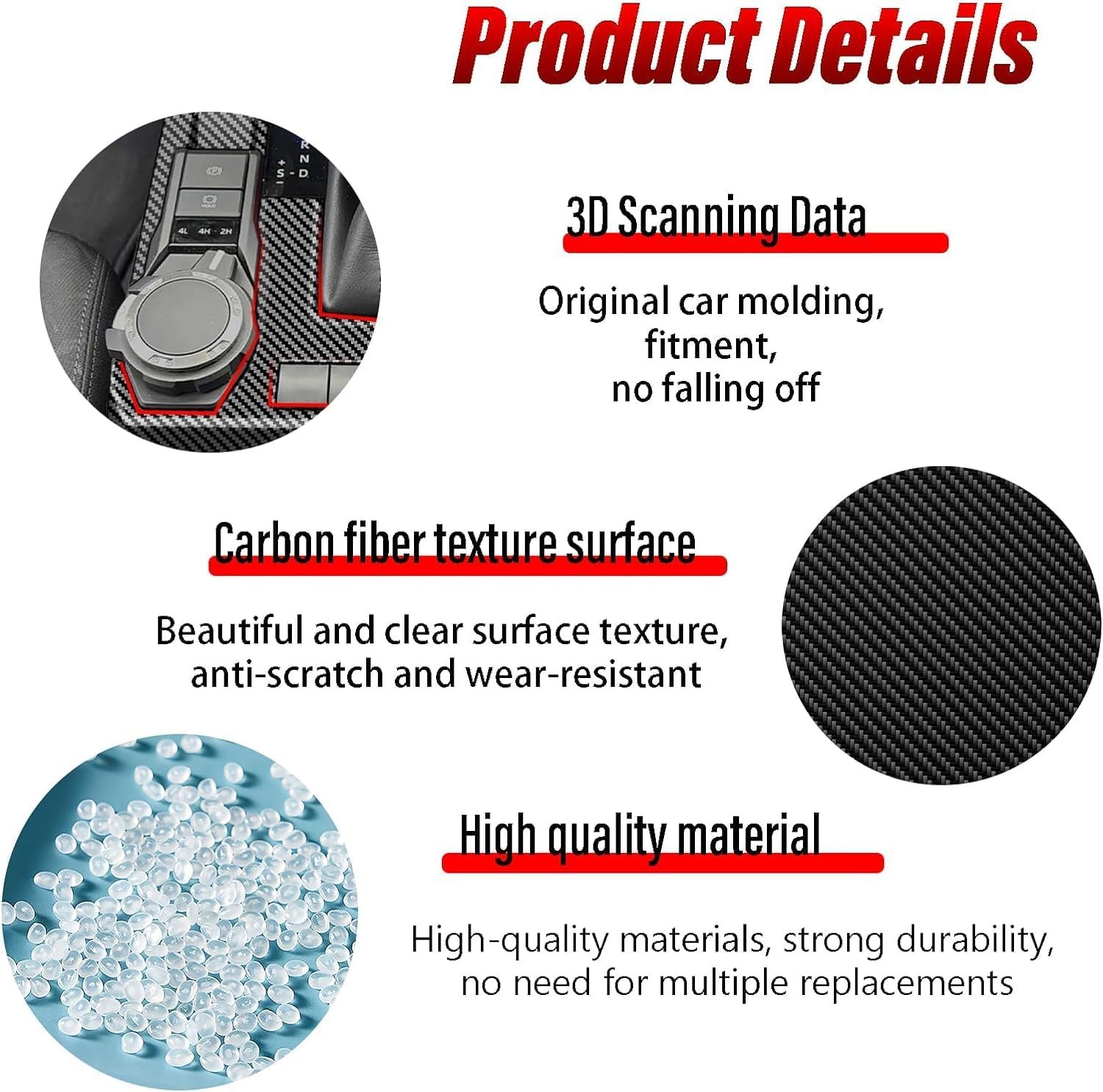 High Quality Material: The Gear Shift Panel Trim is crafted from high-quality ABS material, ensuring it is lightweight, sturdy, and durable. It is resistant to cracking or breaking, providing long-lasting protection for your vehicle’s console.