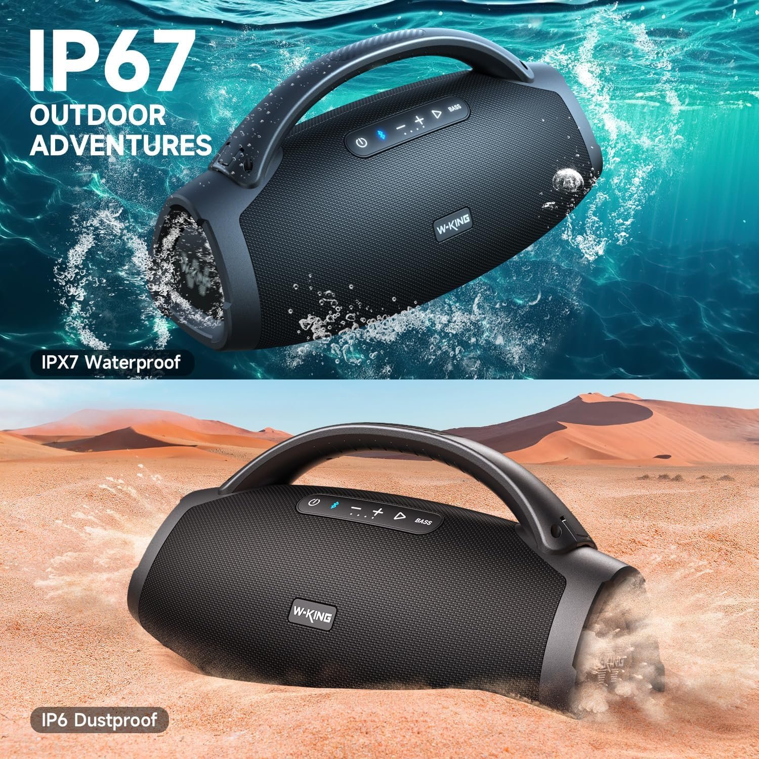 IPX7 Waterproof and IP6 Dustproof Ultimate Durability: The X20 waterproof bluetooth speaker is designed to withstand any elements. IPX7 waterproof bluetooth speaker is suitable for use around swimming pool, beach even rainy weather without the risk of damage. IP6 dustproof outdoor speaker contributes to an extended lifespan. Taking the X20 IP67 waterproof speaker to enjoy music in a wide range of environments, from outdoor adventures to social gatherings
