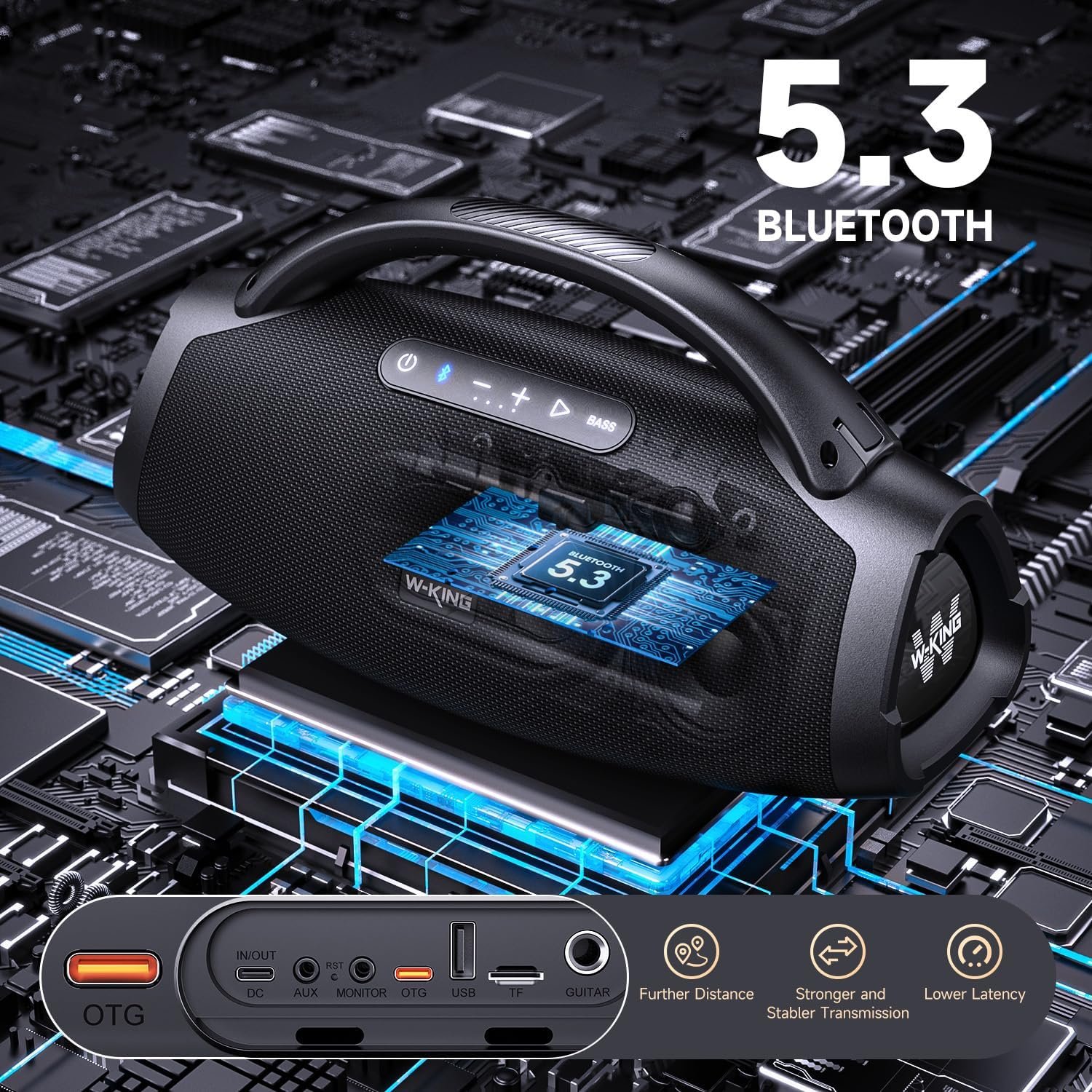 Support Advanced Bluetooth 5.3, OTG, AUX, TF, and U Flash: The X20 speakers bluetooth wireless feature better sound quality, faster data transfer speeds and lower consumption through Bluetooth 5.3. The speakers bluetooth wireless can bring you clearer and more detailed sound, a low-latency listening experience, less interference, longer connection range. OTG option allows to establish a direct connection between the speaker and compatible devices by OTG cable, such as smartphones or tablets