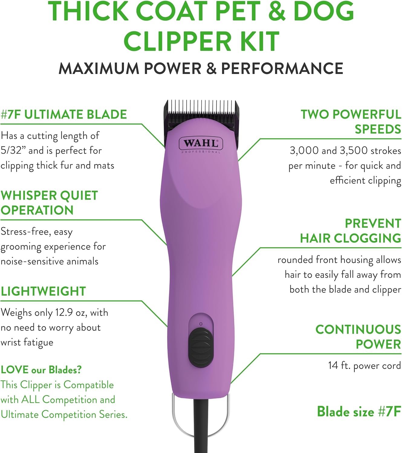 Pet Clippers for Dogs: Comes equipped with Wahl’s #7F Ultimate Competition Series blade for fast, smooth, and safe clipping, providing a 5/32″ (3.8 mm) cut length