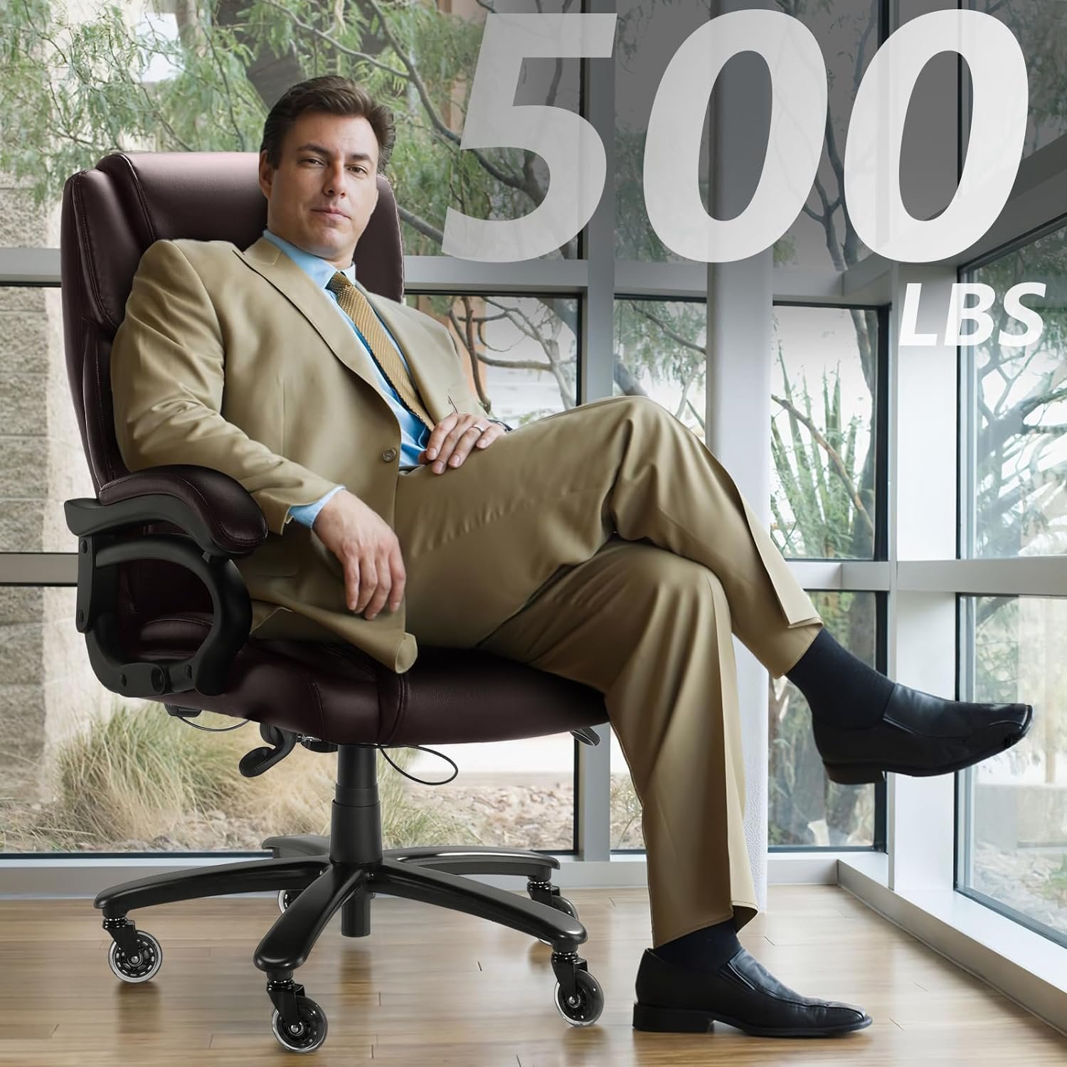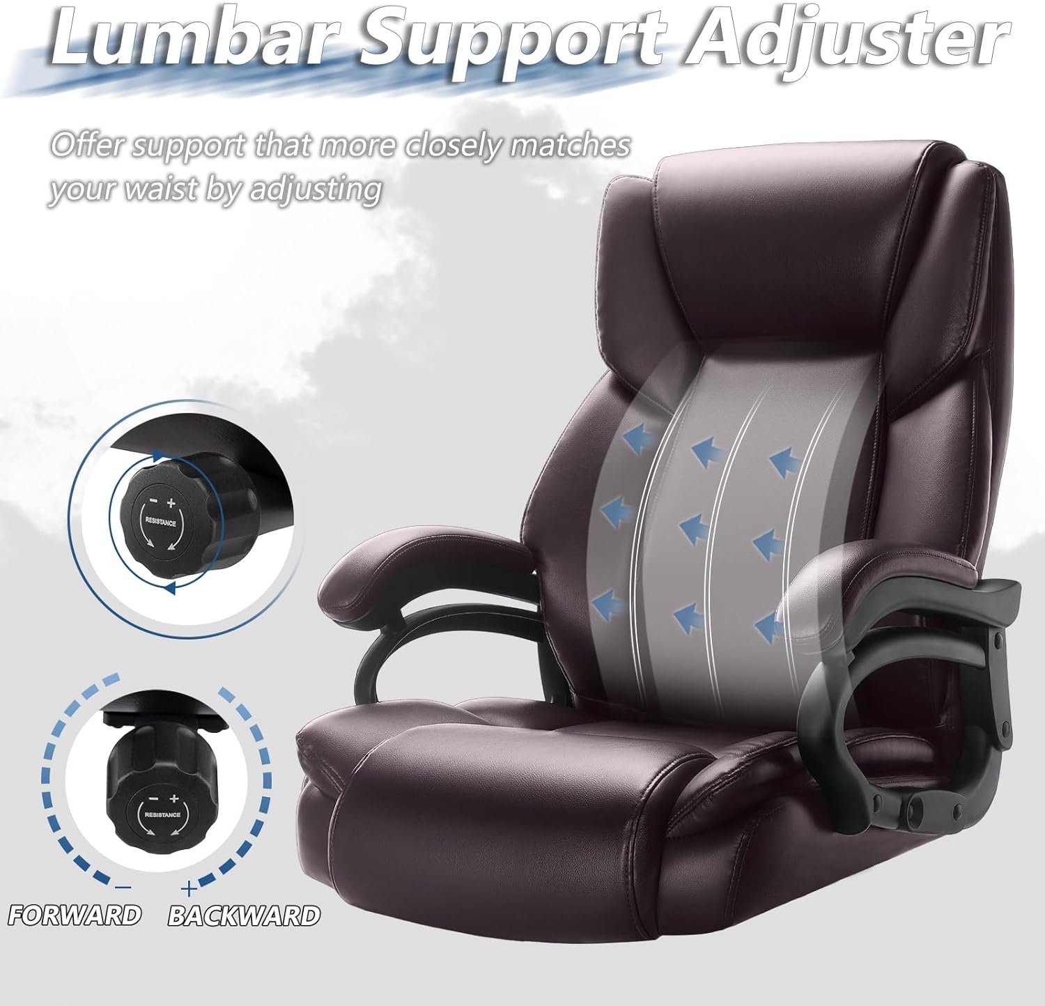 Waleaf Big and Tall Office Chair 500lbs, Adjustable Lumbar Support Executive Office Chair with High Back, Ergonomic Heavy Duty Office Chair Office Chairs for Heavy People