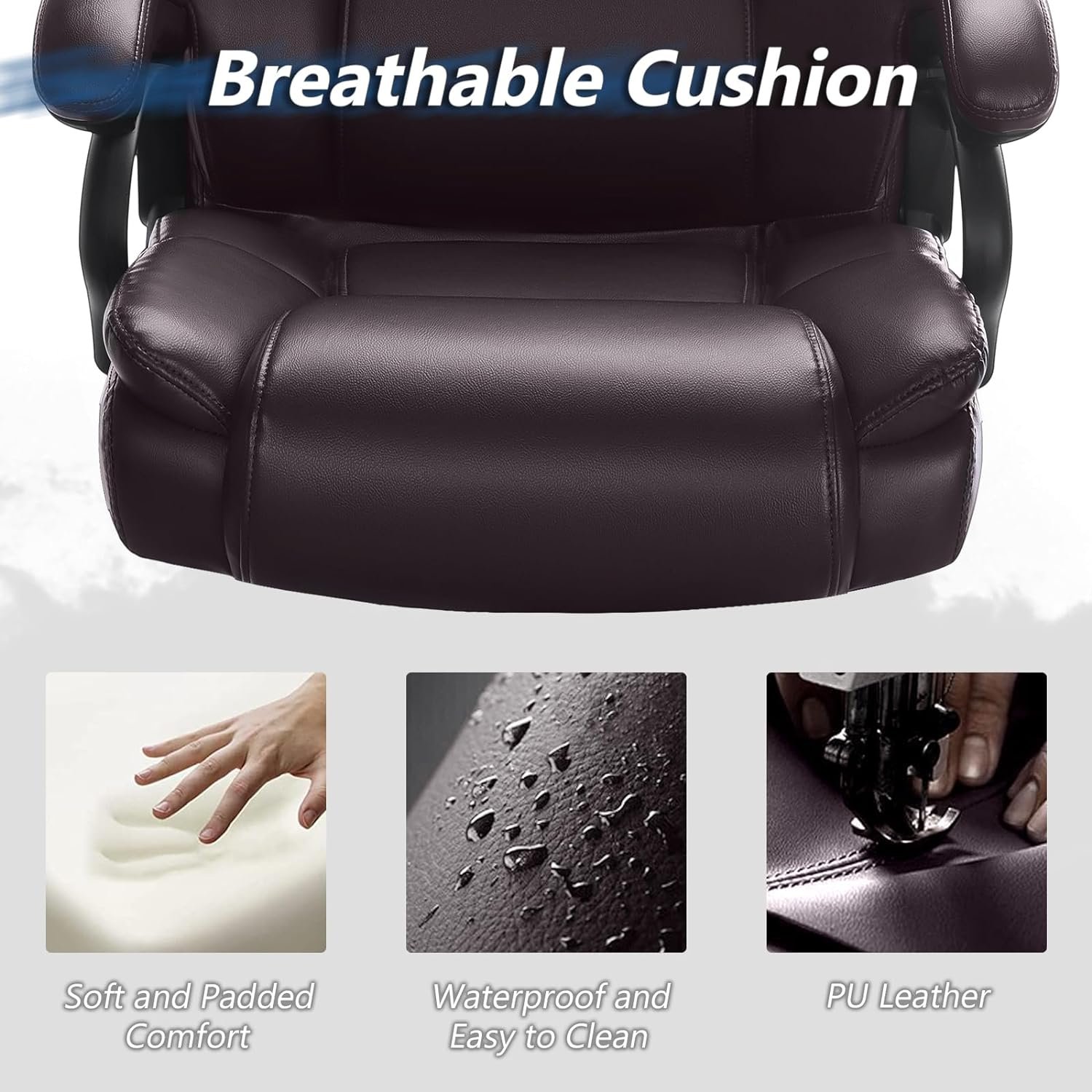✅【Premium & Luxury Material】The leather office chair is constructed of double-layer high-density foam and breathable PU leather. Now, say goodbye to stuffiness with premium breathability and heat dissipation. It is easy to clean and resistant to stains, cracks, and scratches, making it the favored choice for high-end conference room office chairs.