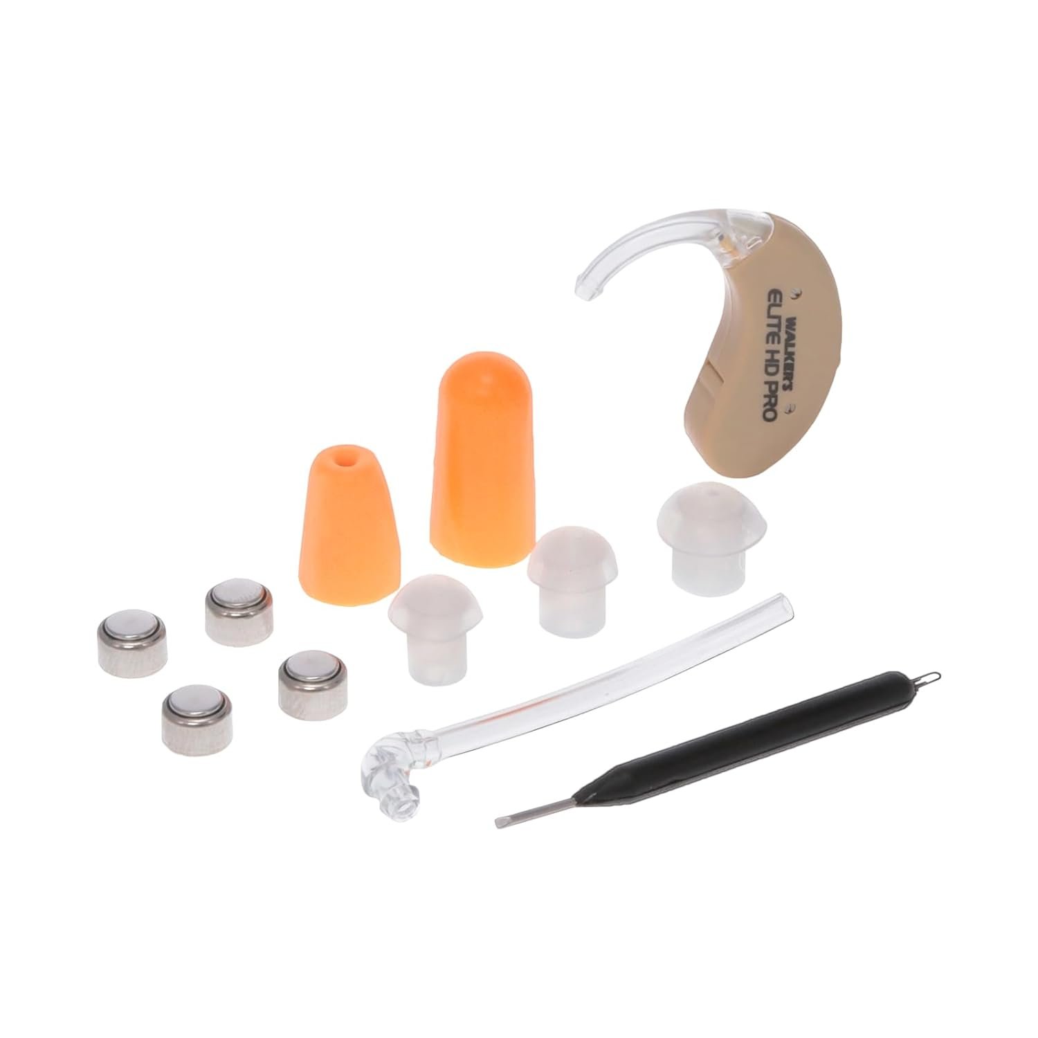 DETAILS – This hearing protection earbud features a low battery tone indicator & toggle volume control, and can be worn in either ear; Includes a Game Ear, Carrying Pouch, Sound Tube, Ear Plug, Mushroom Kit, 4-pack of Batteries & Instruction Manual