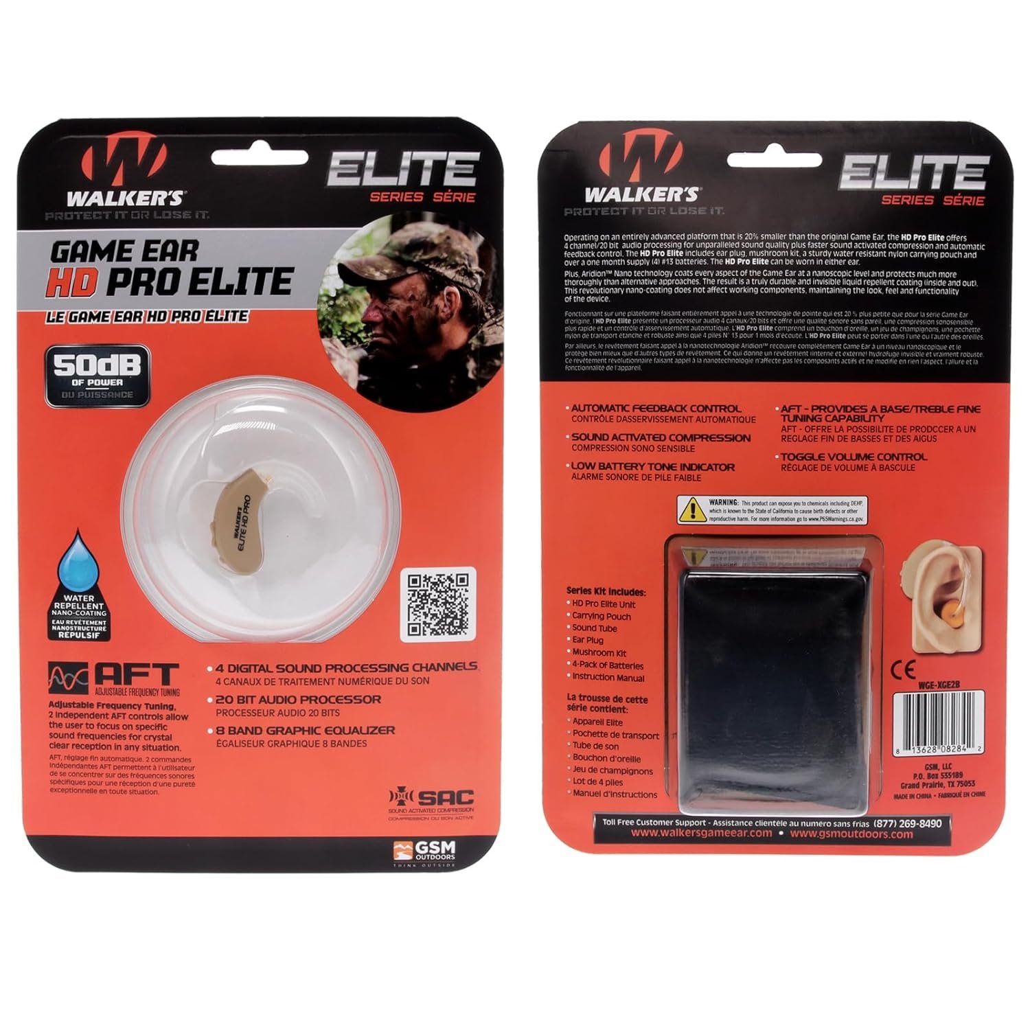 HEARING ENHANCEMENT & PROTECTION – Amplifying high-frequency sounds with 50db of power, this hearing device ensures clarity; With a Sound Activation Compression (SAC) circuit & an ear plug combination, Game Ear HD Elite protects you from loud sounds