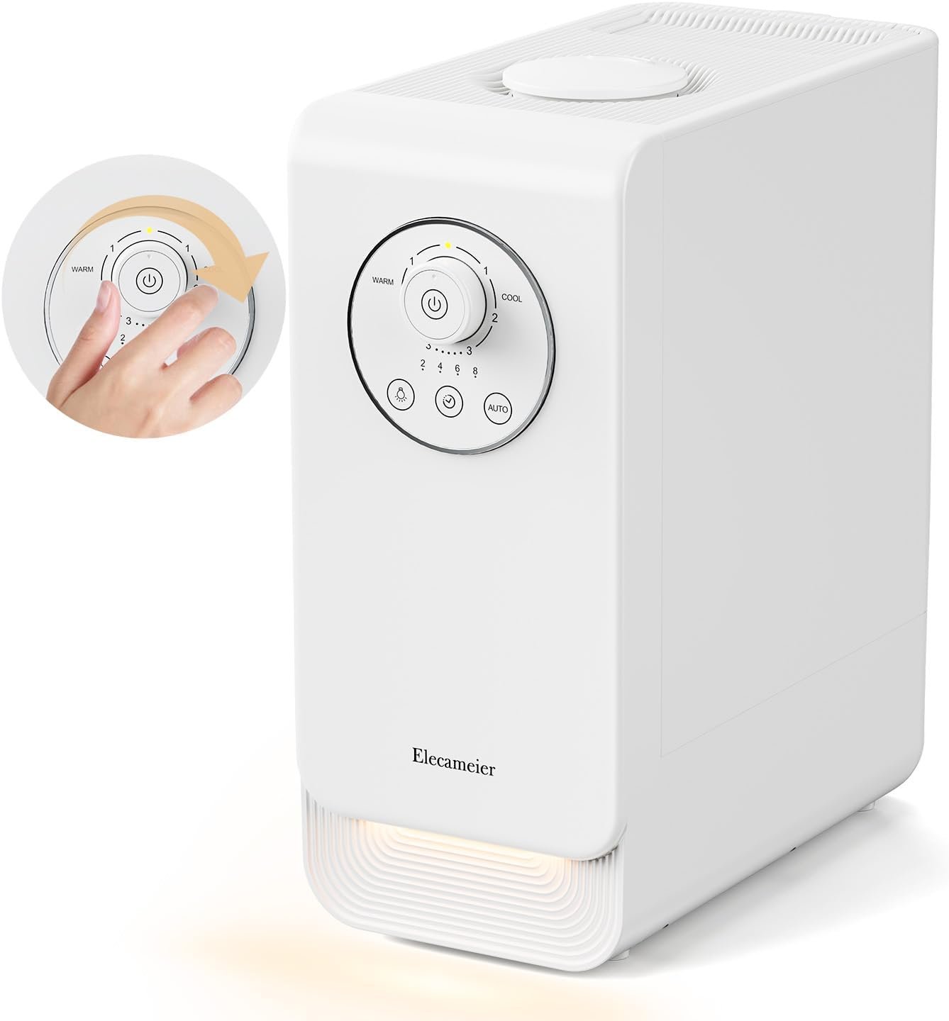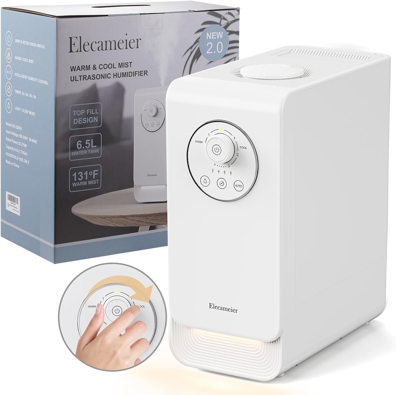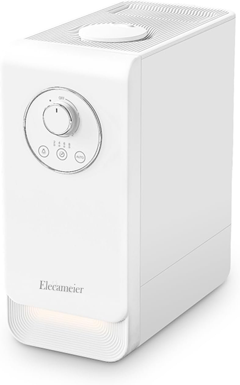 ELECAMEIER New 2.0 warm & cool mist humidifier, which has a large 6.5L water tank, can run continuously for 24 -48 hours when filled with water, the large mist output is suitable for a 500 sq ft large room. A simple knob switch makes it easy to operate and the detachable water tank allows for top filling, making cleaning a breeze. As a plant humidifier, bedroom humidifier, the unique design ensures that it doesn’t take up too much space and can be placed in any corner of the room.