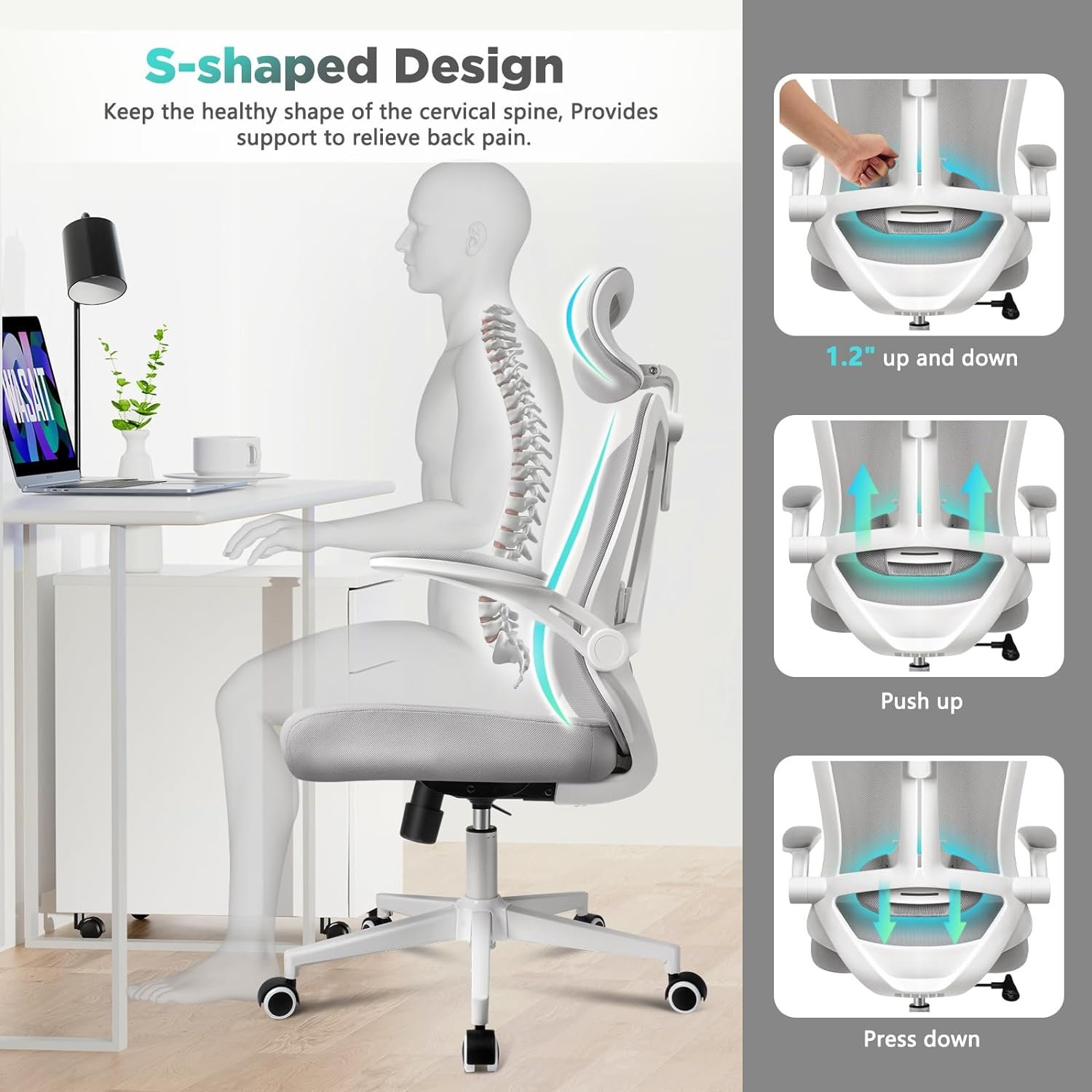 🏆🏆【ADJUSTABLE LUMBAR SUPPORT FOR GOOD POSTURE】 Wasait office chairs feature adjustable lumbar + back support, with a range of 1.2 inches up & down. This lumbar support helps maintain the normal curvature of the spine, easing pressure & pain in the lower back. It enables you to maintain a good sitting posture for extended periods, protecting healthy spinal development for students, ensuring a focused & efficient study or work environment. Ideal for individuals with sciatic or lower back pain.