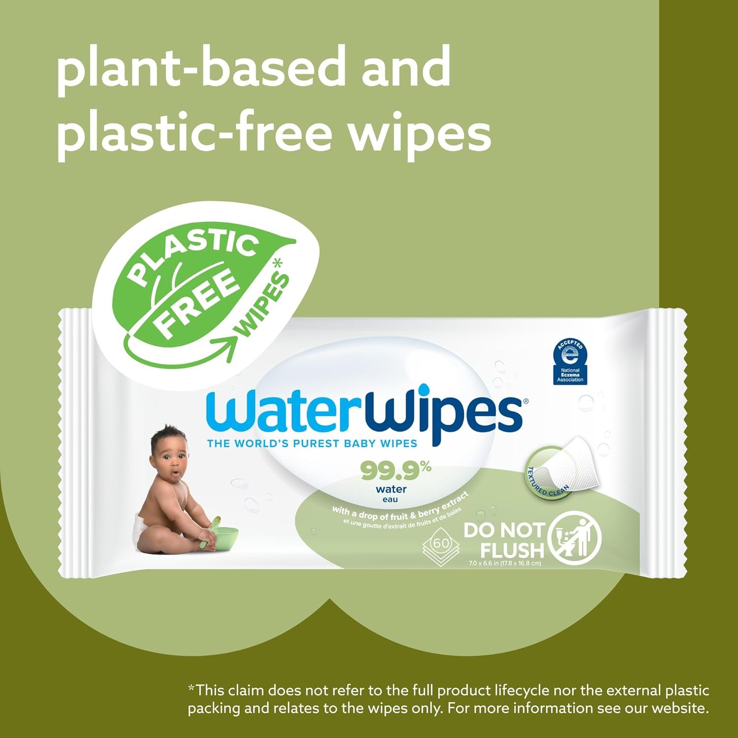 Families can trust WaterWipes Textured Clean 720 count (12 packs) to gently clean and help protect sensitive skin. Our new Plastic-Free Textured Clean toddler and baby wipes are the same formula and purity as before, with just 3 ingredients: 99.9% ultra-purified water and a drop of fruit and berry extract to naturally cleanse the skin.