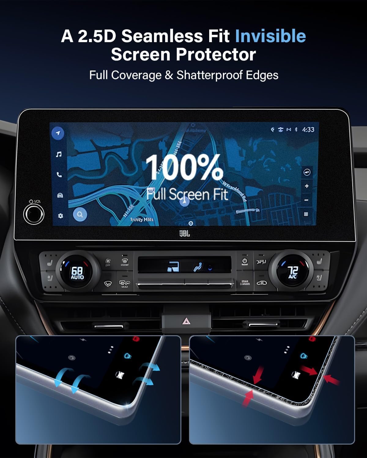 𝟏:𝟏 𝐎𝐫𝐢𝐠𝐢𝐧𝐚𝐥 𝐒𝐜𝐫𝐞𝐞𝐧 𝐃𝐞𝐬𝐢𝐠𝐧: Exclusively designed for the 2024 Toyota Grand Highlander (XLE, Limited, Platinum), the WEIPIN 12.3″ screen protector fits perfectly, eliminating worries about air bubbles or mismatches. Add a touch of elegance to your vehicle with a seamless fit.