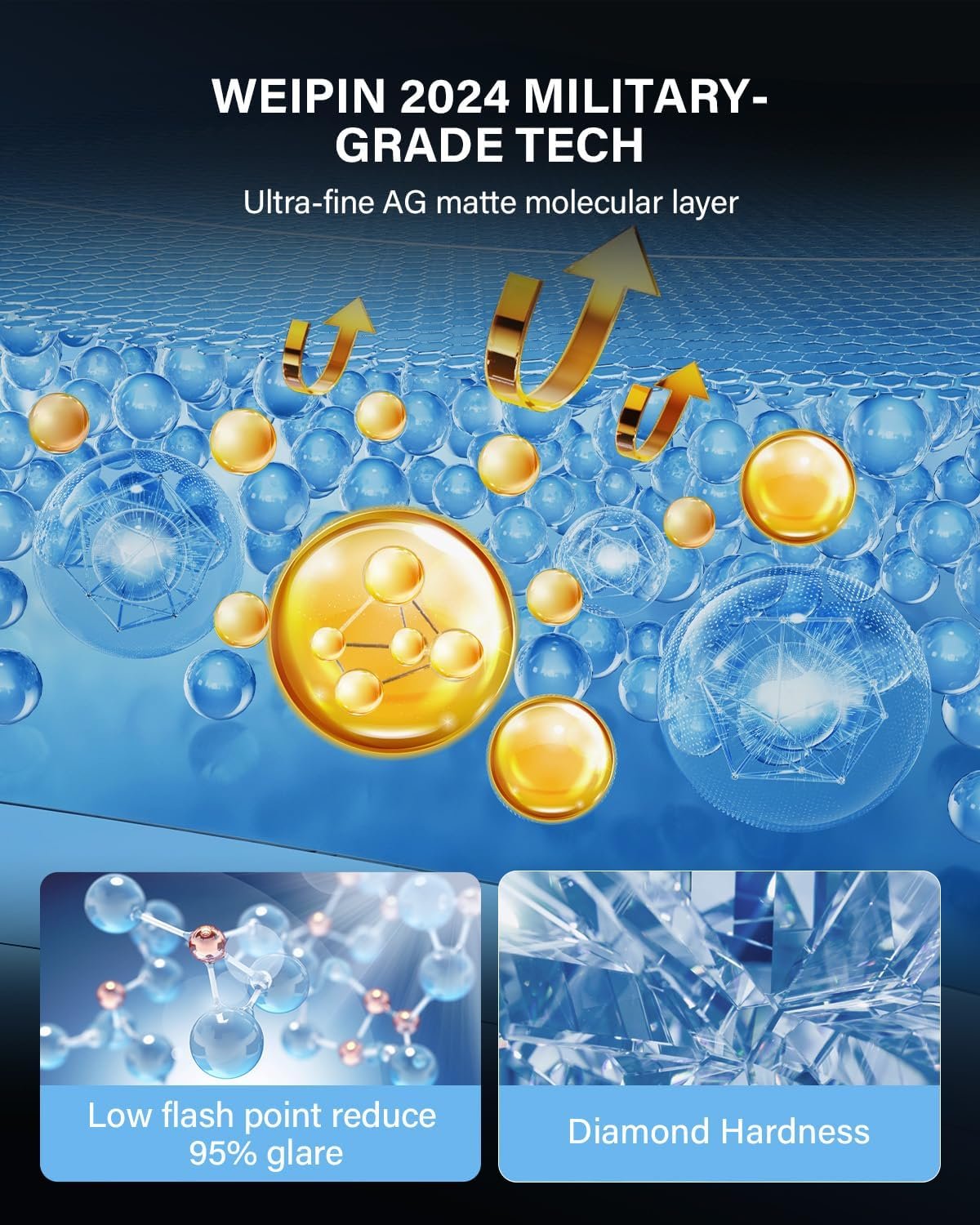 𝐑𝐞𝐯𝐨𝐥𝐮𝐭𝐢𝐨𝐧𝐚𝐫𝐲 𝐀𝐆 𝐂𝐨𝐚𝐭𝐢𝐧𝐠 𝐟𝐨𝐫 𝐂𝐫𝐲𝐬𝐭𝐚𝐥-𝐂𝐥𝐞𝐚𝐫 𝐕𝐢𝐬𝐢𝐨𝐧: Experience clarity like never before with the WEIPIN High-Definition Matte Screen Protector. Our state-of-the-art AG coating technology masterfully eliminates the common issue of nighttime blurriness seen in standard matte films. This innovation ensures your screen remains vividly clear and visually comfortable, regardless of the lighting conditions.