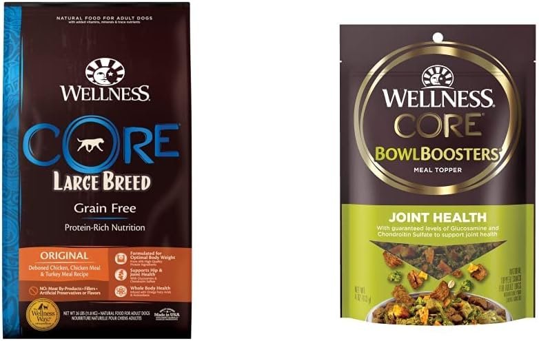 Wellness CORE Natural Grain Free Dry Dog Food, Large Breed, 26-Pound Bag + Wellness CORE Bowl Booster Joint Health Dog Food Topper