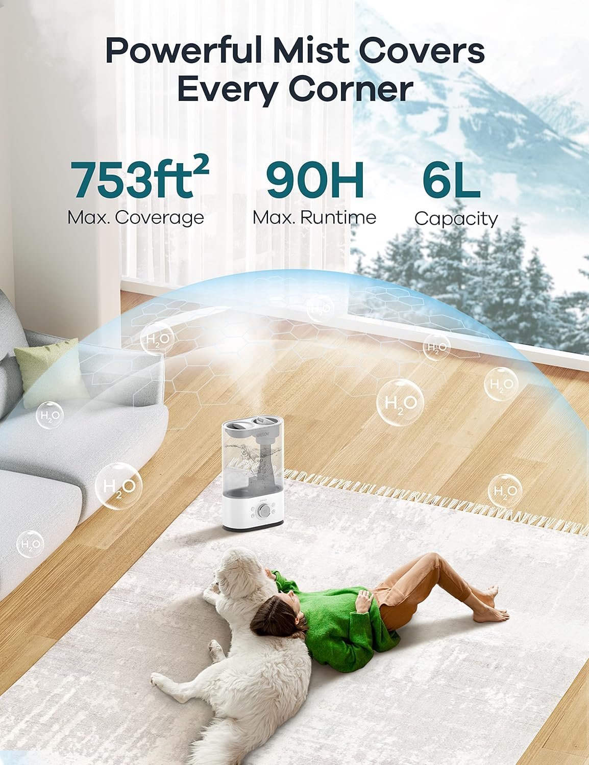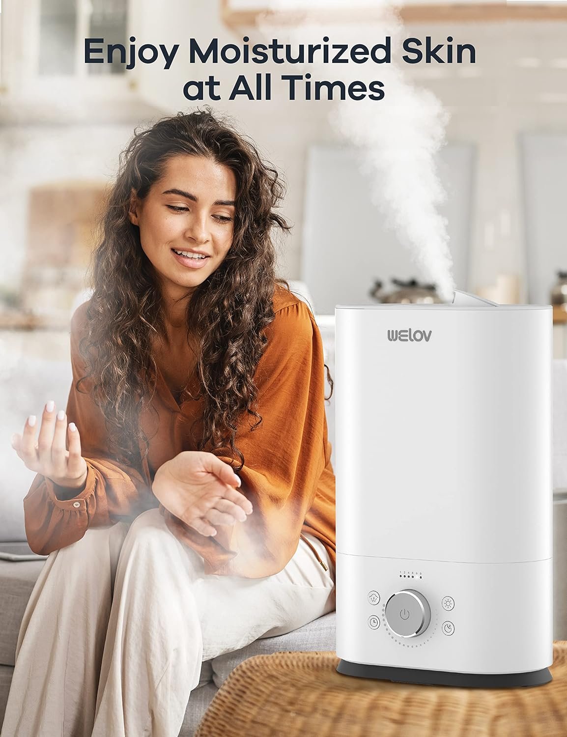 ๐๐ง๐๐ ๐๐๐๐ข๐ฅ๐ฅ, ๐๐จ๐ข๐ฌ๐ญ ๐๐ฅ๐ฅ ๐๐๐ฒ: WELOV’s humidifier comes with a large 6L capacity, it can last for up to 25-90 hours and fully humidify a room as big as 753 sq. ft, so you can keep the humidifier on all day long when the air feels extra dry. Its output is adjustable, so you can crank it up to maximum or down to minimum as often as you see fit. You can also adjust the direction of the mist โ which reaches an impressive height of 43.3 inches.