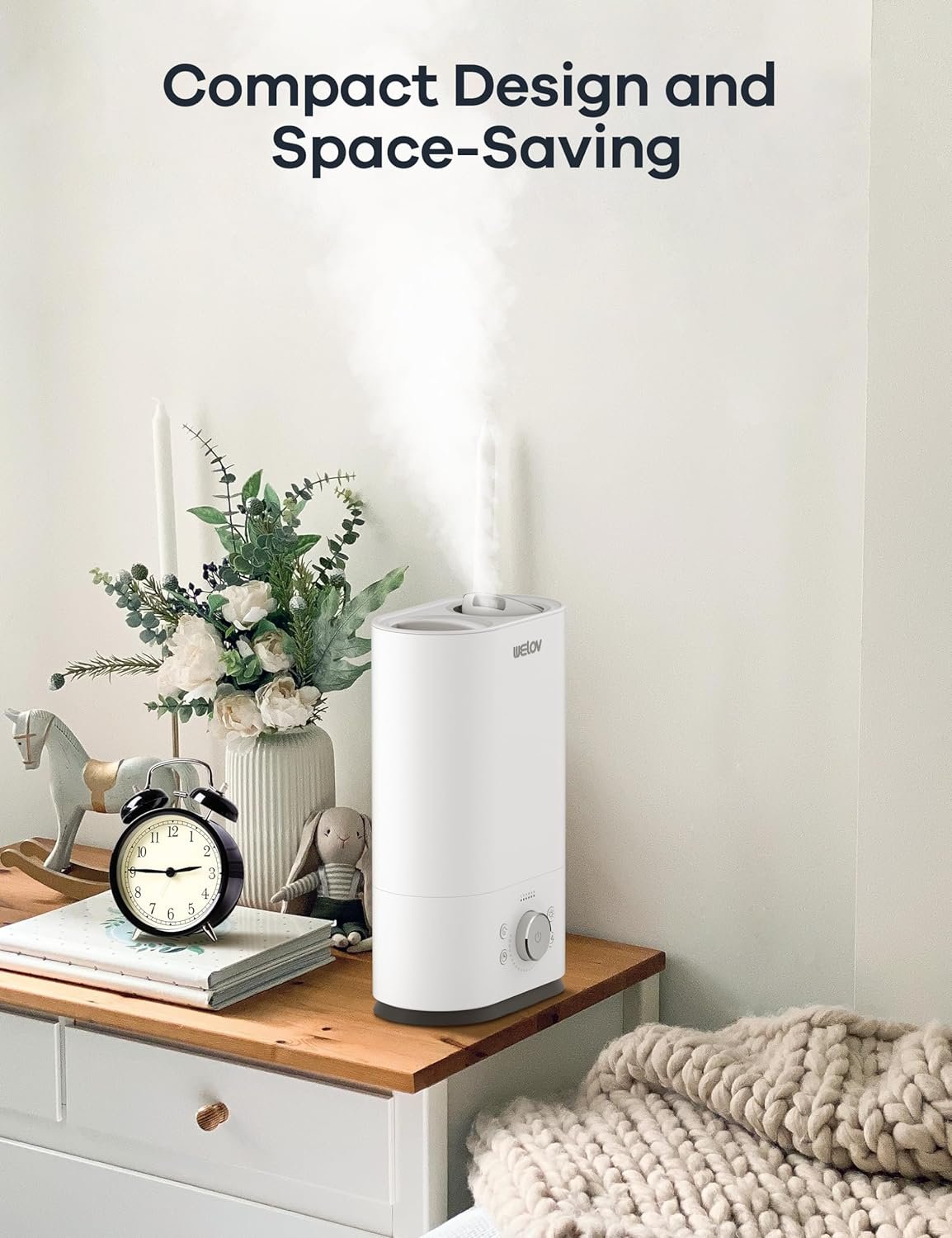 ๐๐ฌ๐ญ๐๐ซ ๐๐ฎ๐ฆ๐ข๐๐ข๐๐ข๐๐๐ญ๐ข๐จ๐ง: Low humidity can wreak havoc on areas such as the skin, throat and nasal passages, so having a humidifier to make conditions more comfortable indoors is crucial in the winter. WELOV humidifier can quickly solve the problem of room dryness. Thanks to boostmist technology, boosting humidity by 30% in 18 mins, and cool mist output of up to 550ml/h, quickly providing cool moisture to dry air.