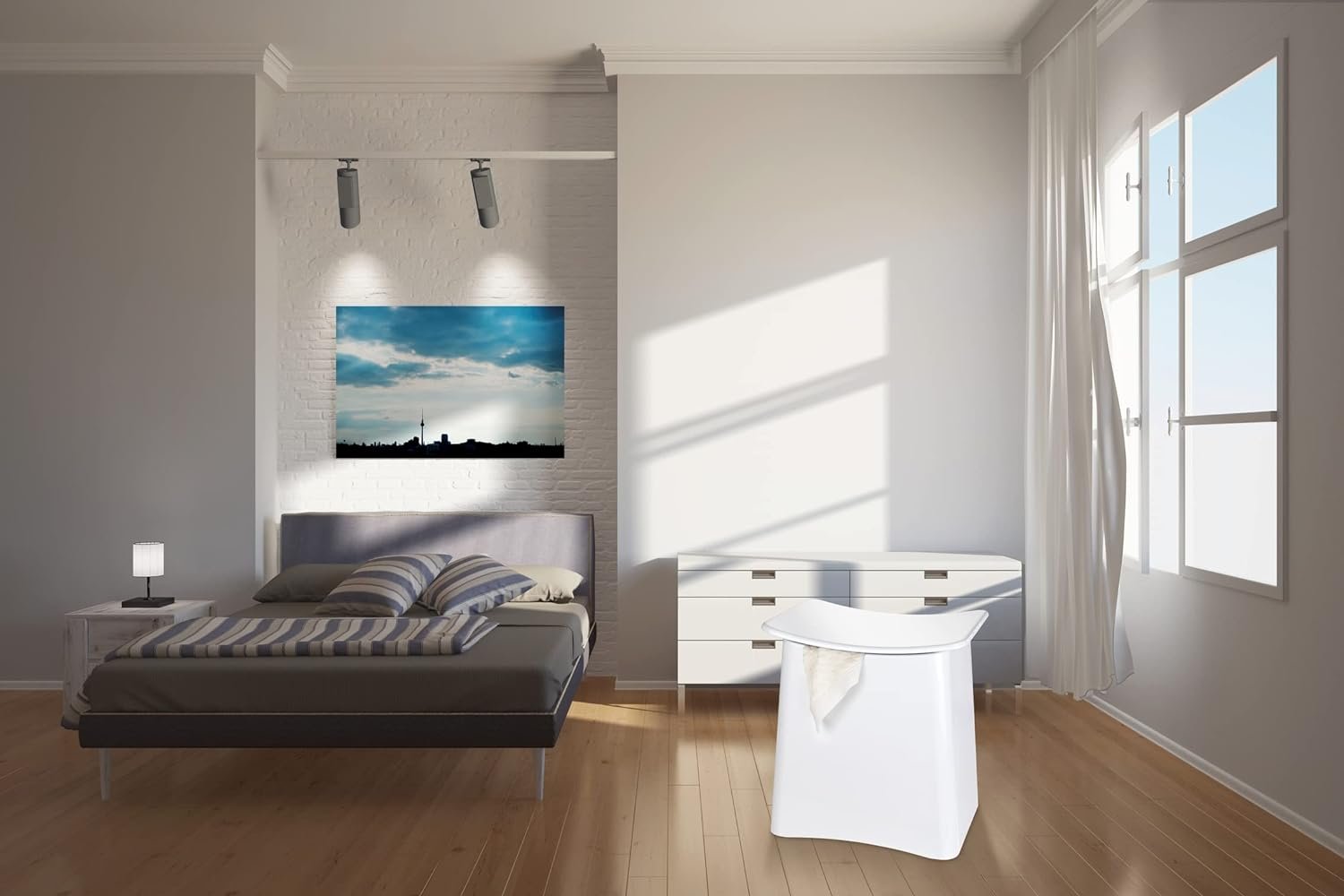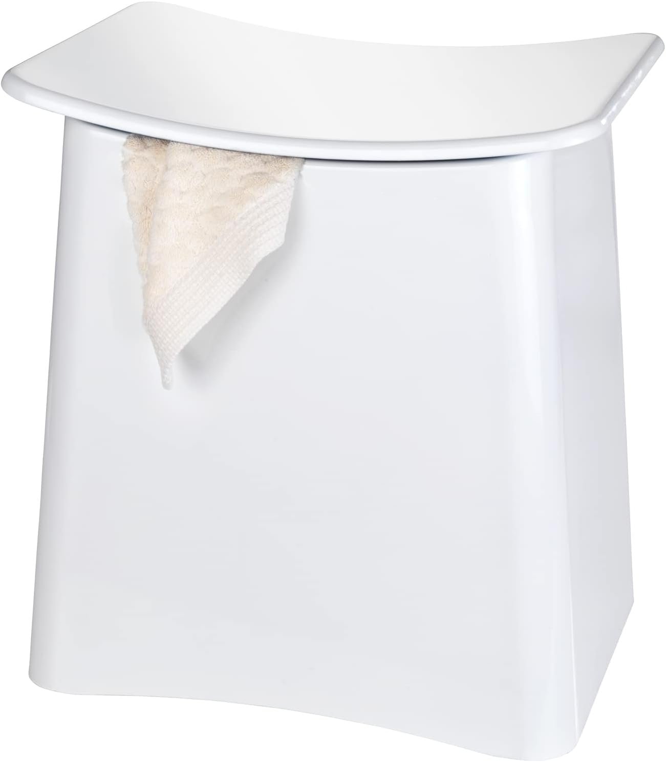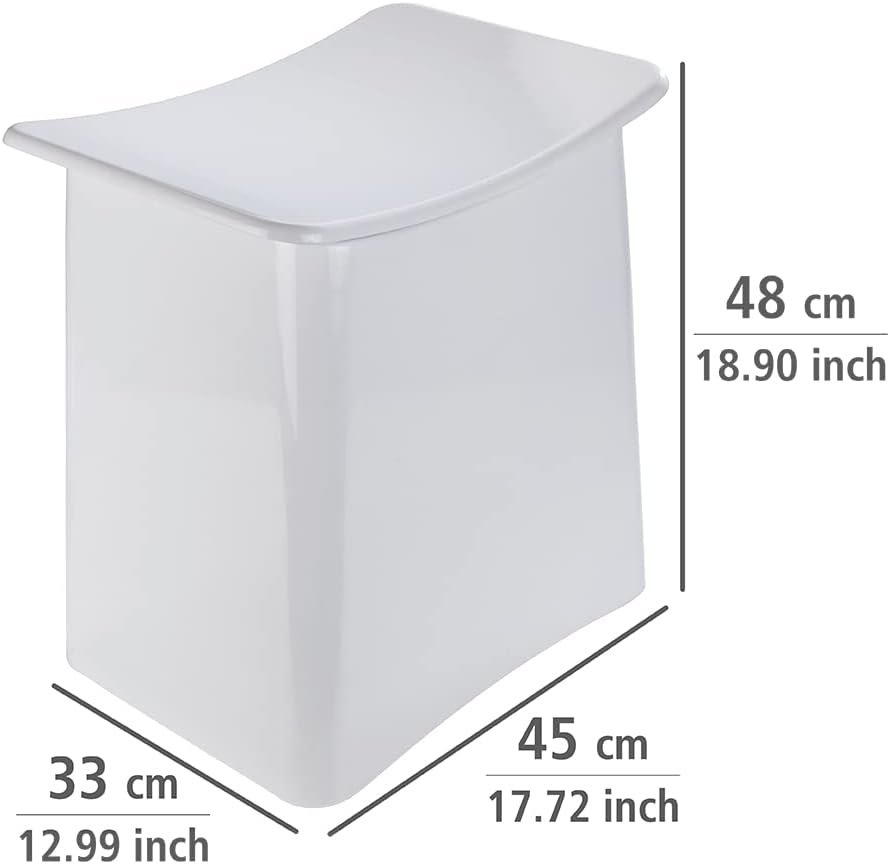 The Wing Bathroom Laundry Basket Stool and Trendy Laundry Chest is made of sturdy ABS plastic. With its classic white color and modern rounded design, the laundry basket stool is an essential accessory in every bathroom.