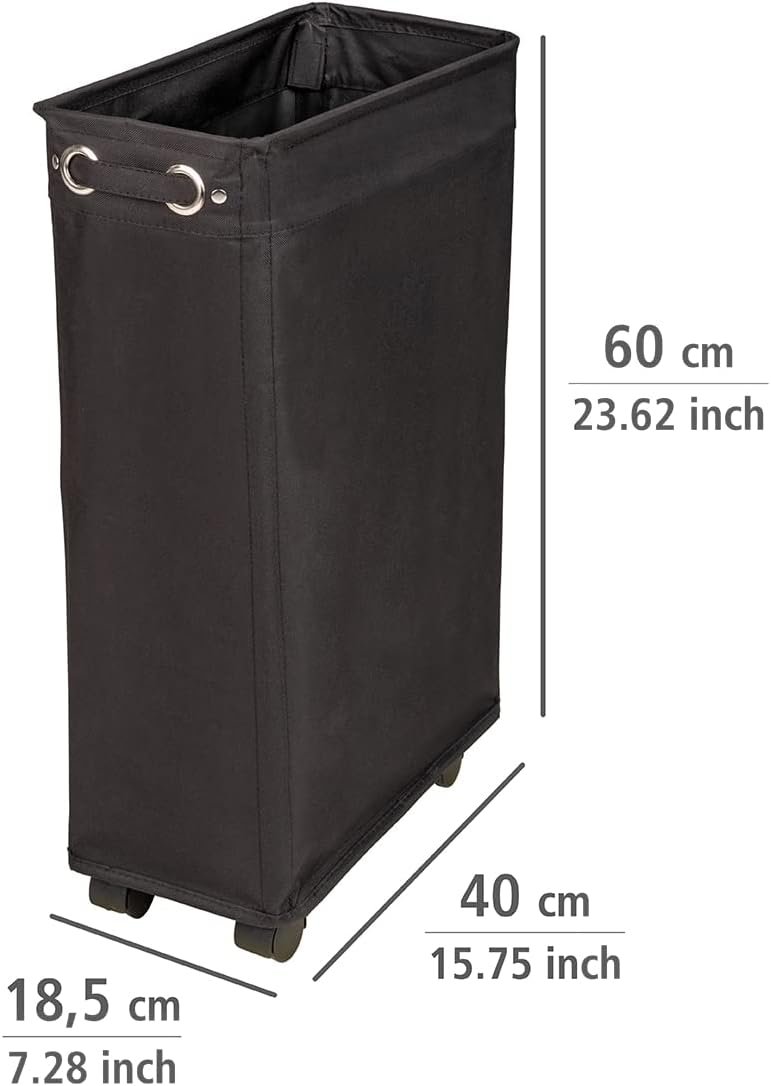 Box contents: 1 x Corno laundry hamper in black, laundry chest by WENKO, capacity 43 L, (W x H x D): 18.5 x 60 x 40 cm, 100% polyester, waterproof