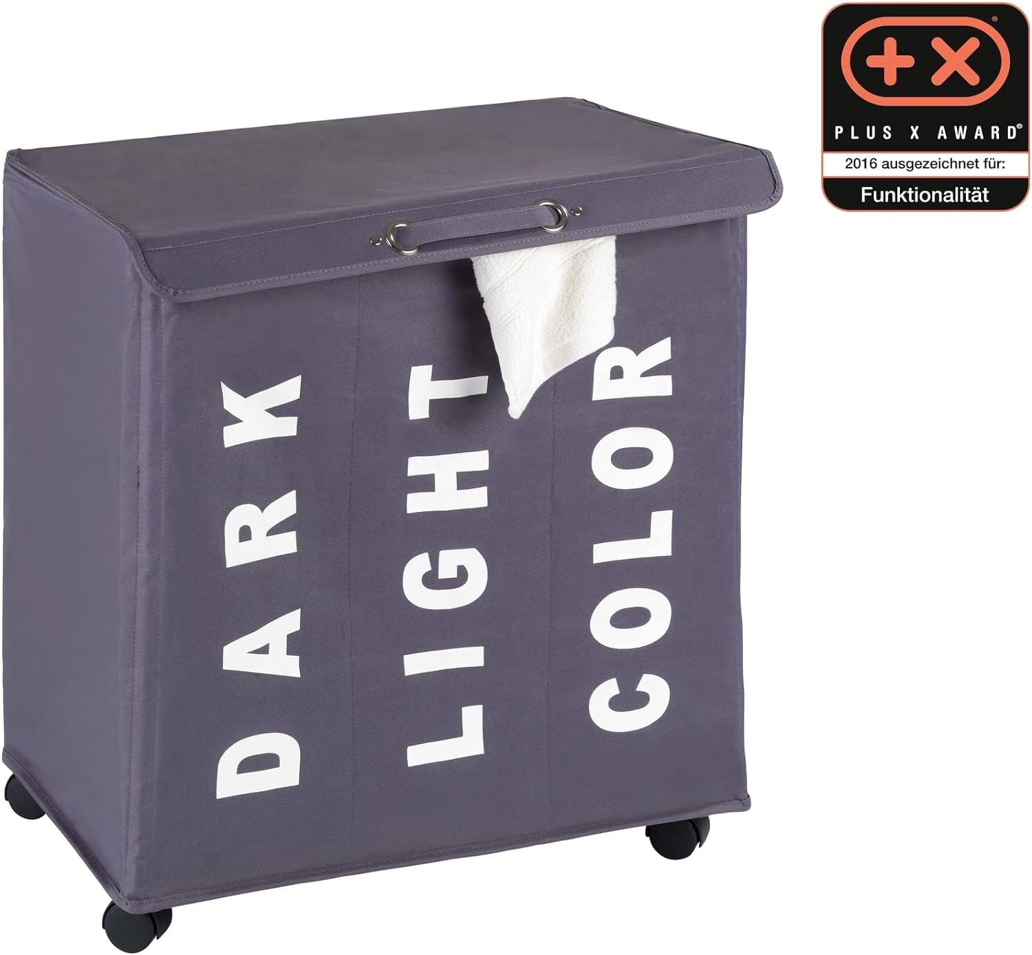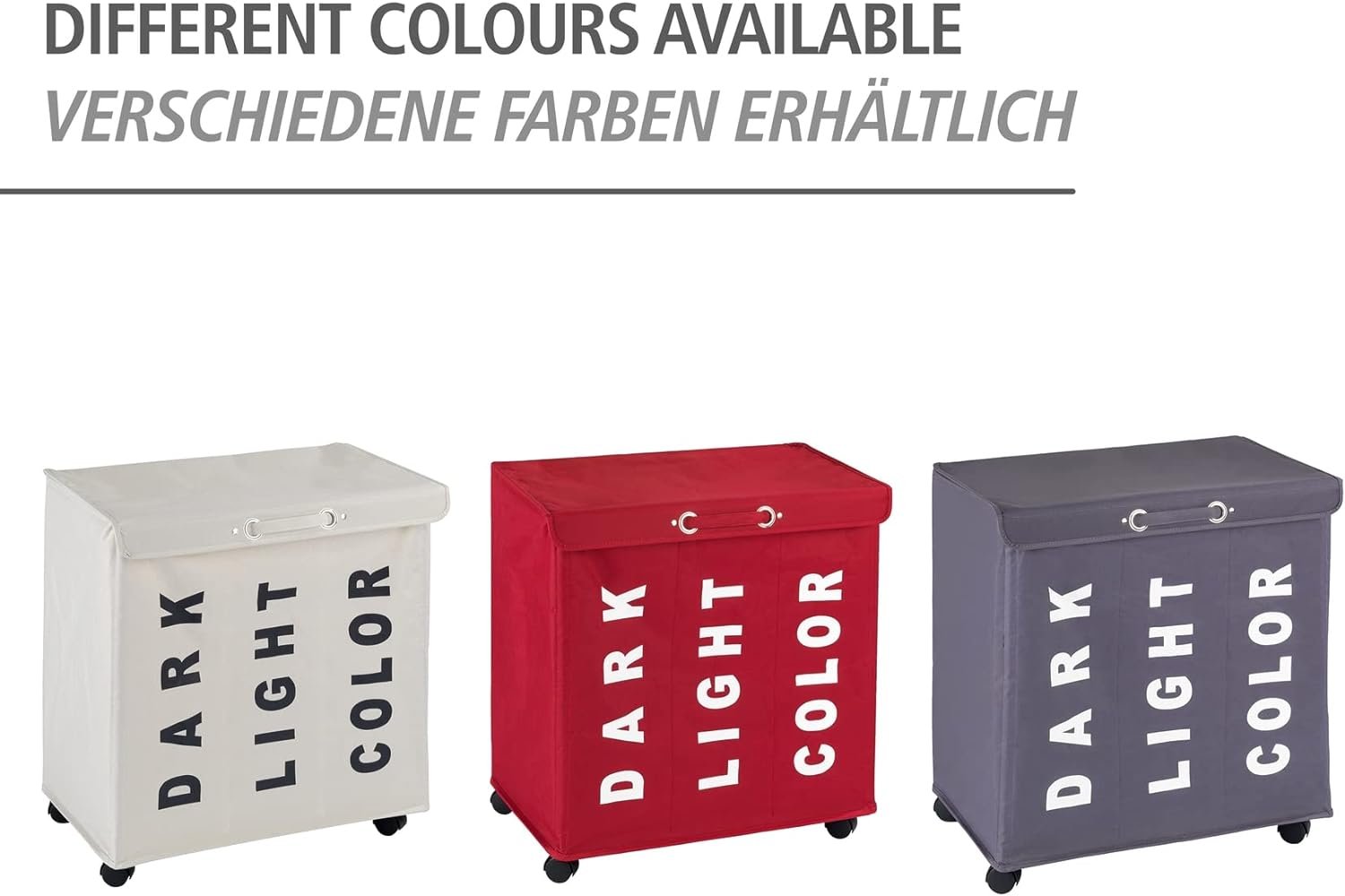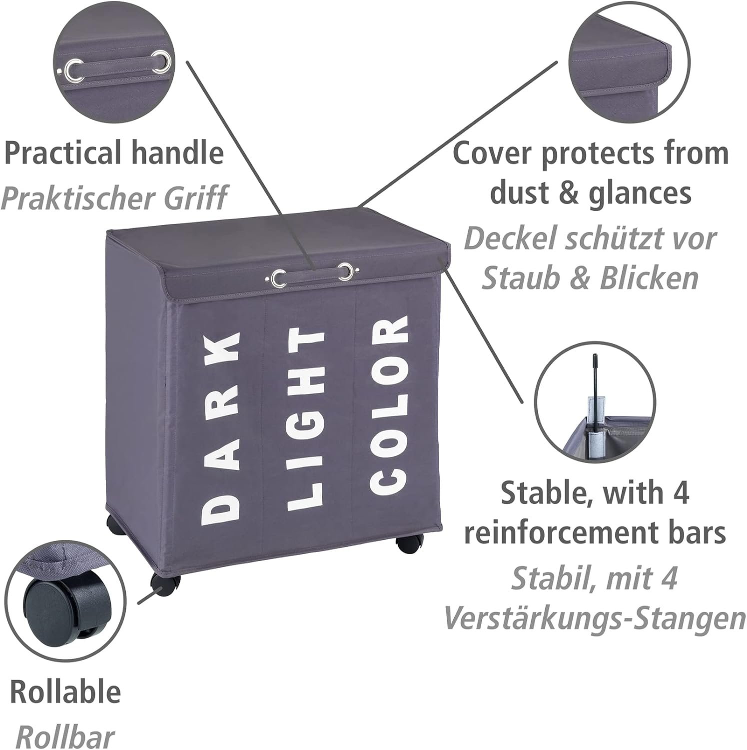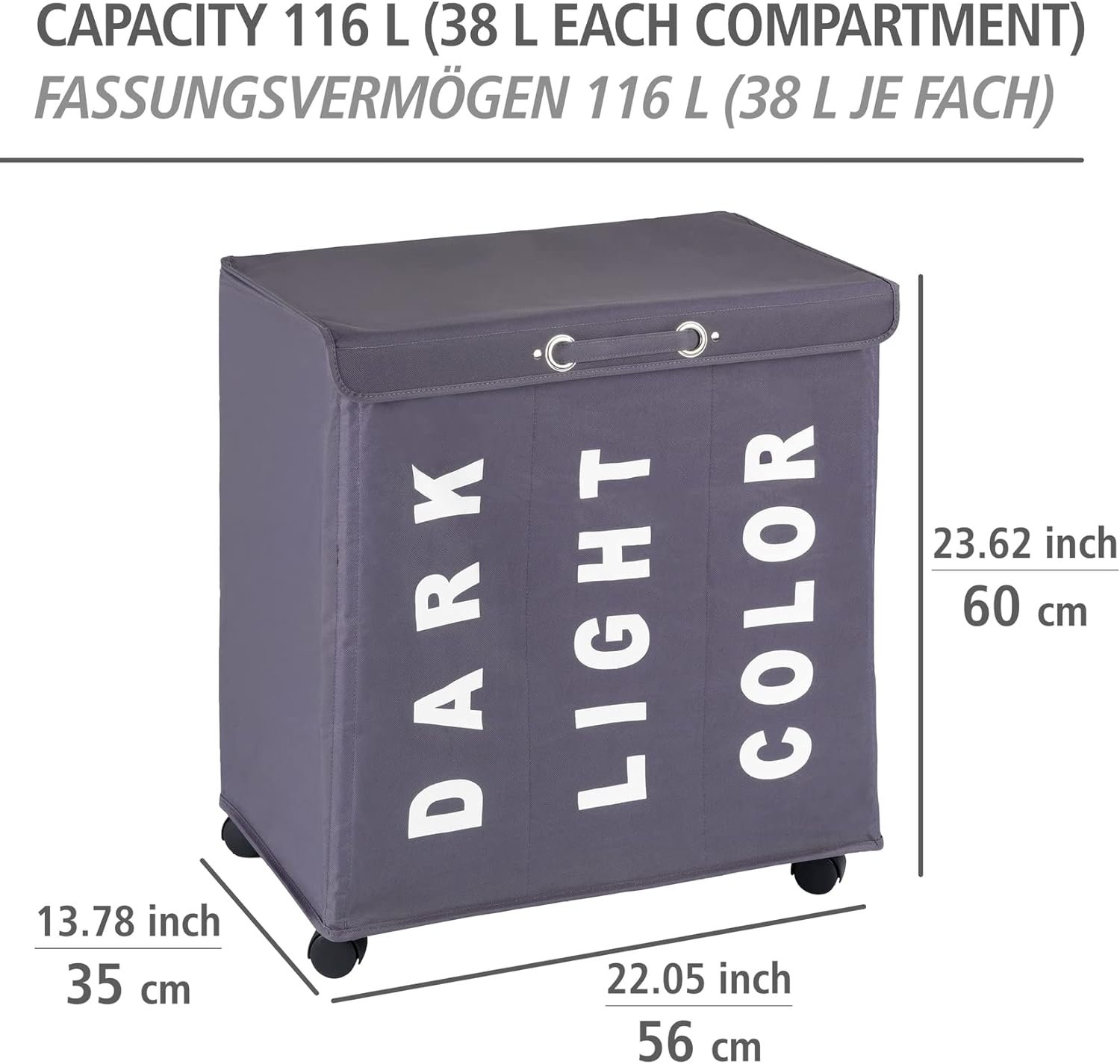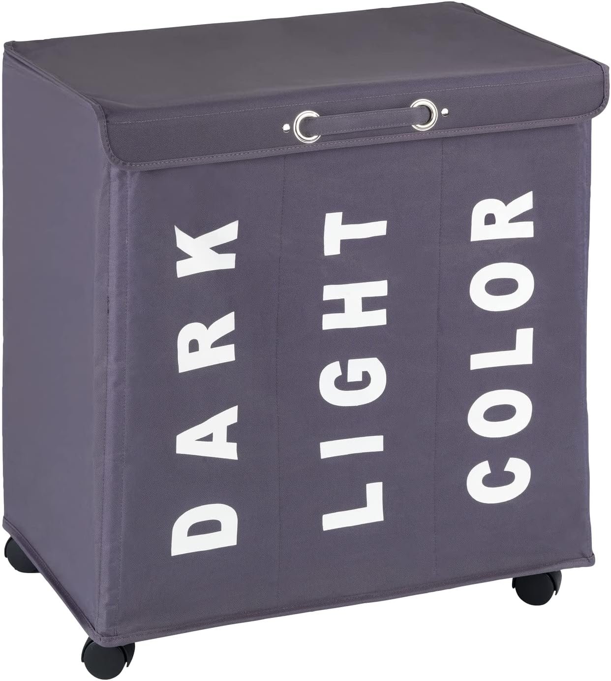 WENKO Trivo Basket, Laundry Sorter, with Lid, Hamper, Laundry Bin, 3 Section, 3 Bag, Room Storage, 30.64 gallon/22″ x 23.6″ x 13.8″, Grey
