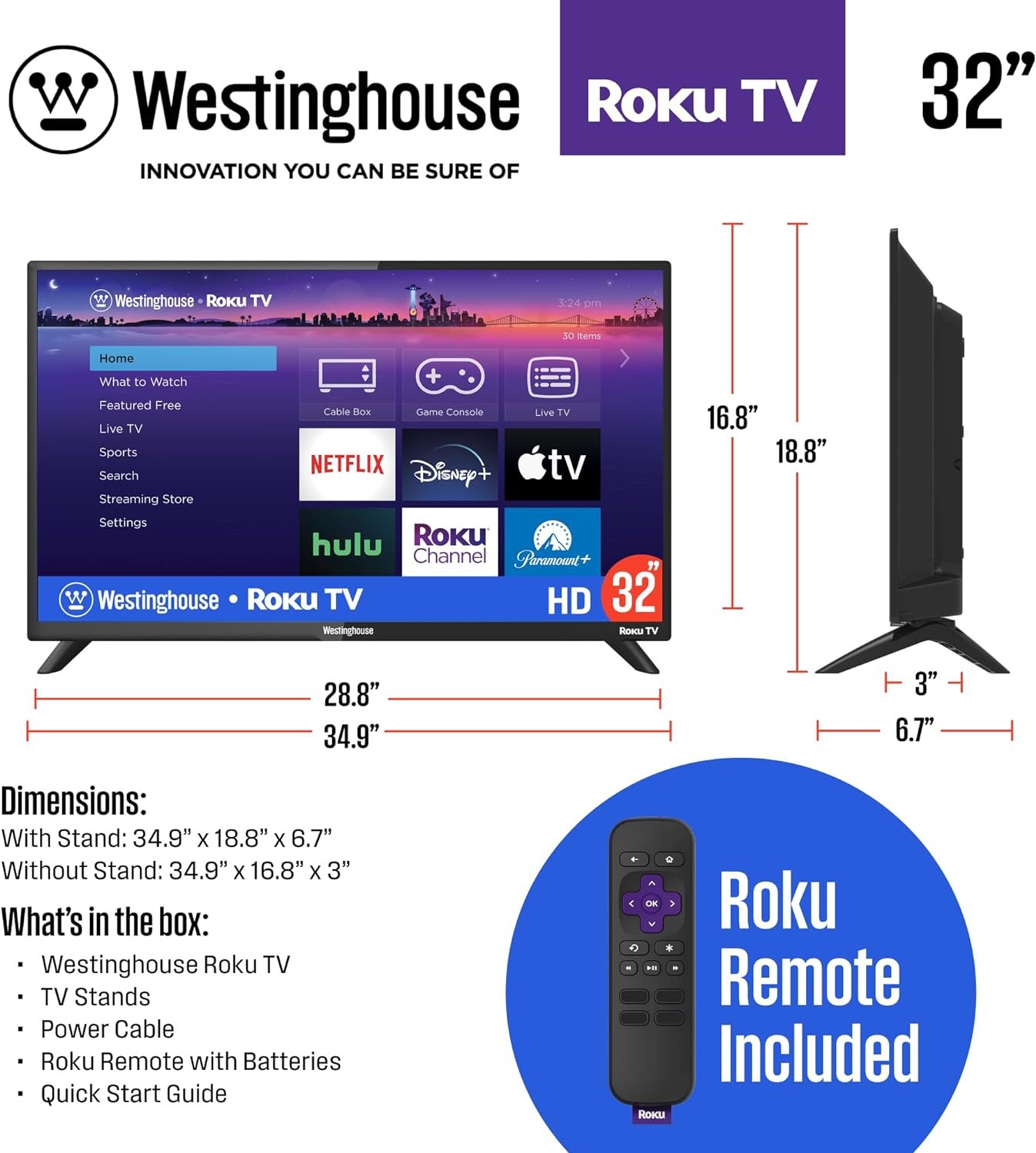 Westinghouse Roku TV – 32 Inch Smart TV, 720P LED HD TV with Wi-Fi Connectivity and Mobile App, Flat Screen TV Compatible with Apple Home Kit, Alexa and Google Assistant