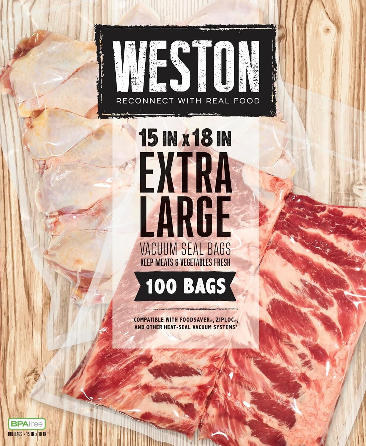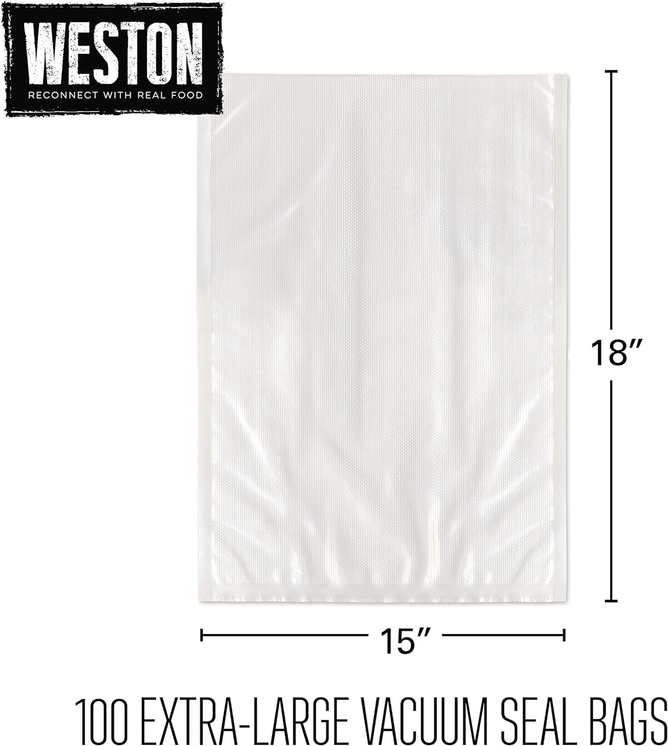 Included components: vac sealer bags, 15″ x 18″ (xl), 100 count