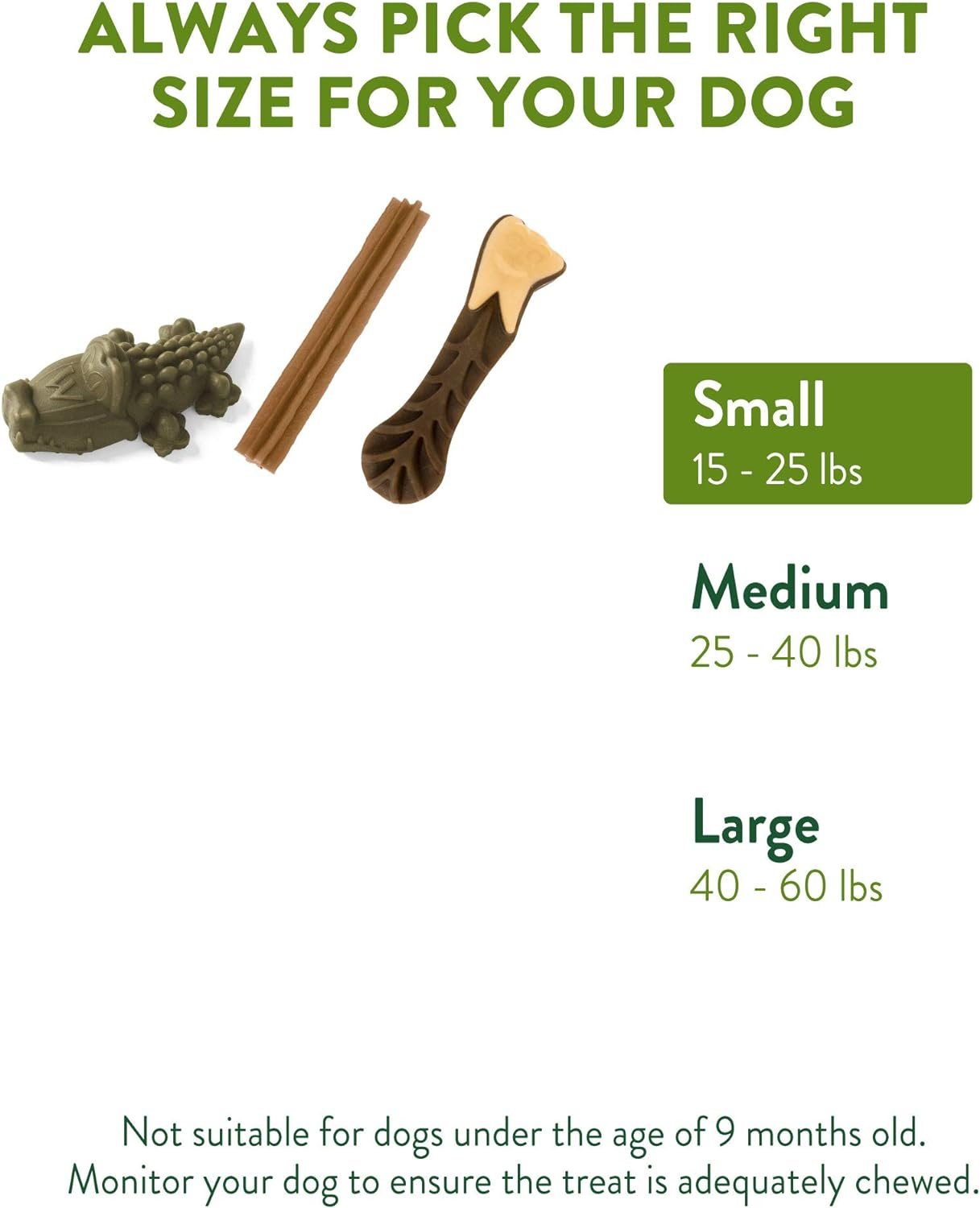 These dog dental treats clean teeth, freshen breath and reduce tartar and plaque; for adult medium size dogs 5-15 lbs