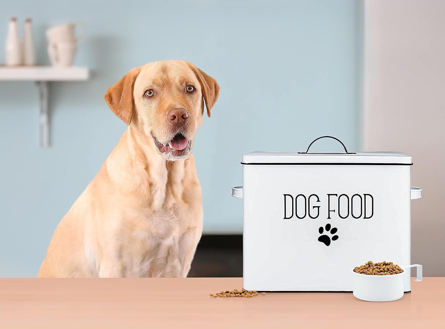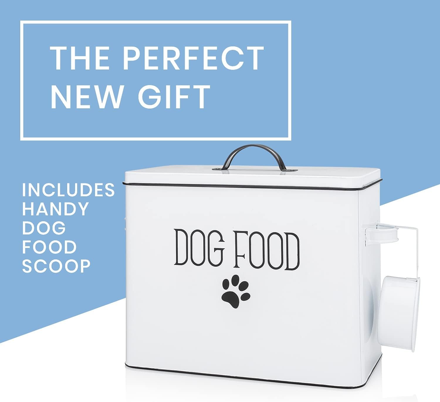 EXPERIENCE THE FARMHOUSE LOOK: Add a touch of style to your home! This elegant dog food container will deliver the modern farmhouse theme to your kitchen or pantry, while keeping the contents of the container fresh and ready to be served! Unlike other pet food storage containers, this features a doggy paw print along with a hand-drawn dog food screen print, delivering a more personalised look.