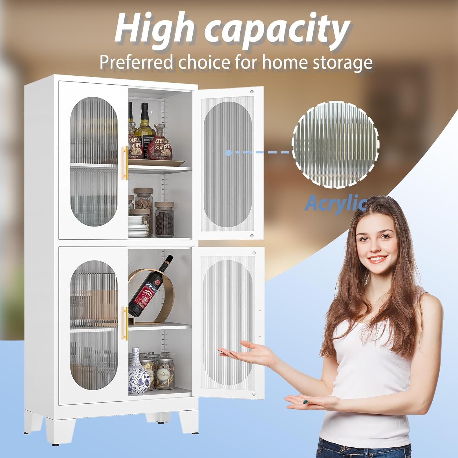 【Durable Material】The metal storage cabinet is composed of high-quality cold-rolled steel, which is hard and solid, can bear a load of 180 pounds, and is not easy to break and be damaged. The cabinet window material is an acrylic panel, which is less likely to break than glass