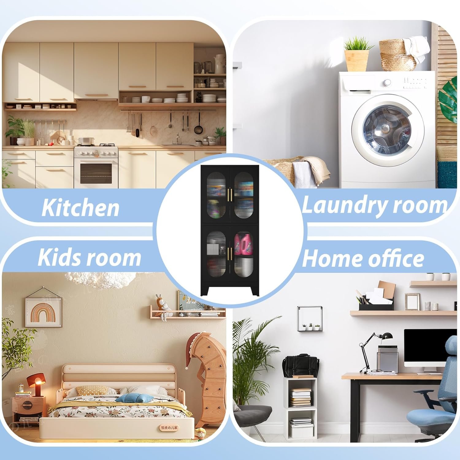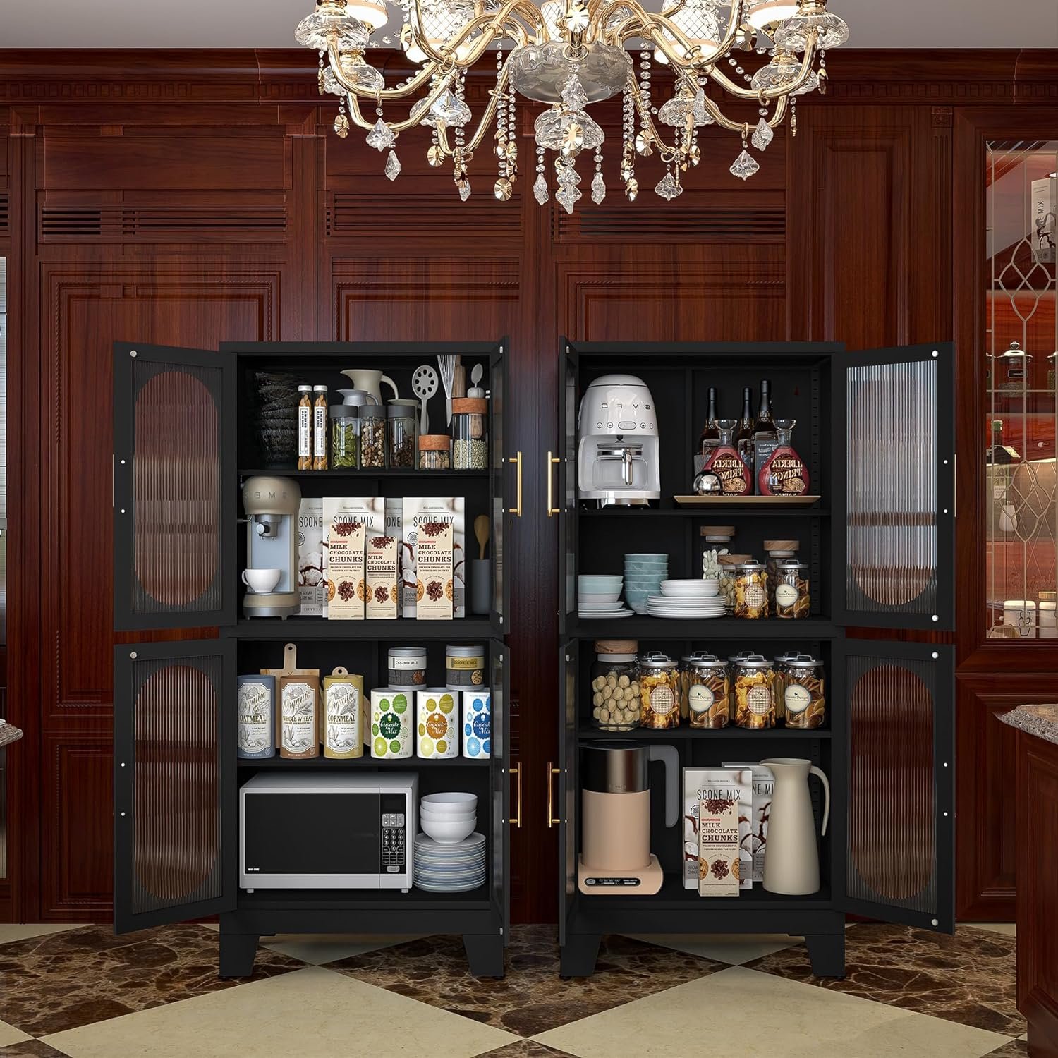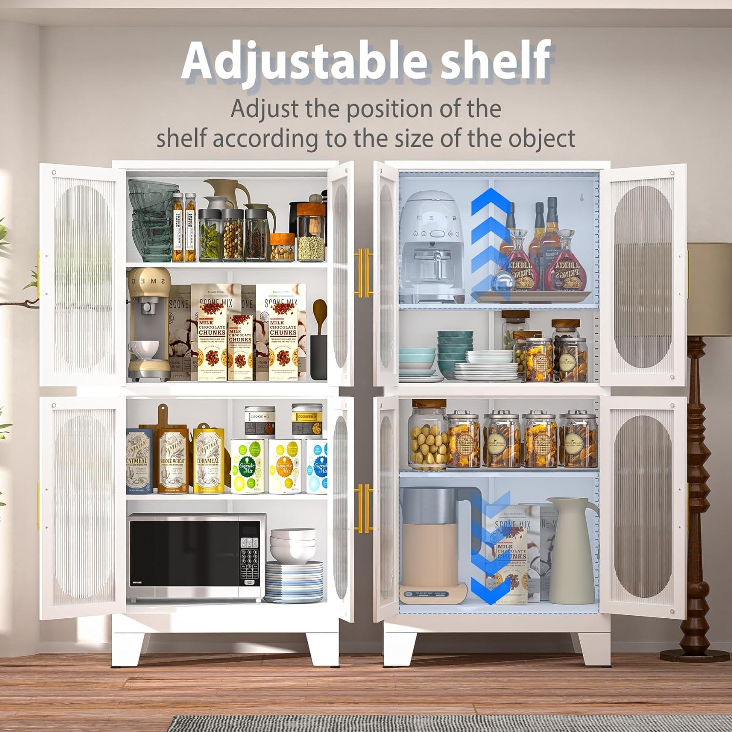 【Adjustable Design】The kitchen storage cabinet shelves are adjustable, and large utensils can also be placed in the cabinet to keep the kitchen clean and tidy. The food cabinet has adjustable feet. If the floor is uneven, adjust the leveling feet to adjust the door to the same level