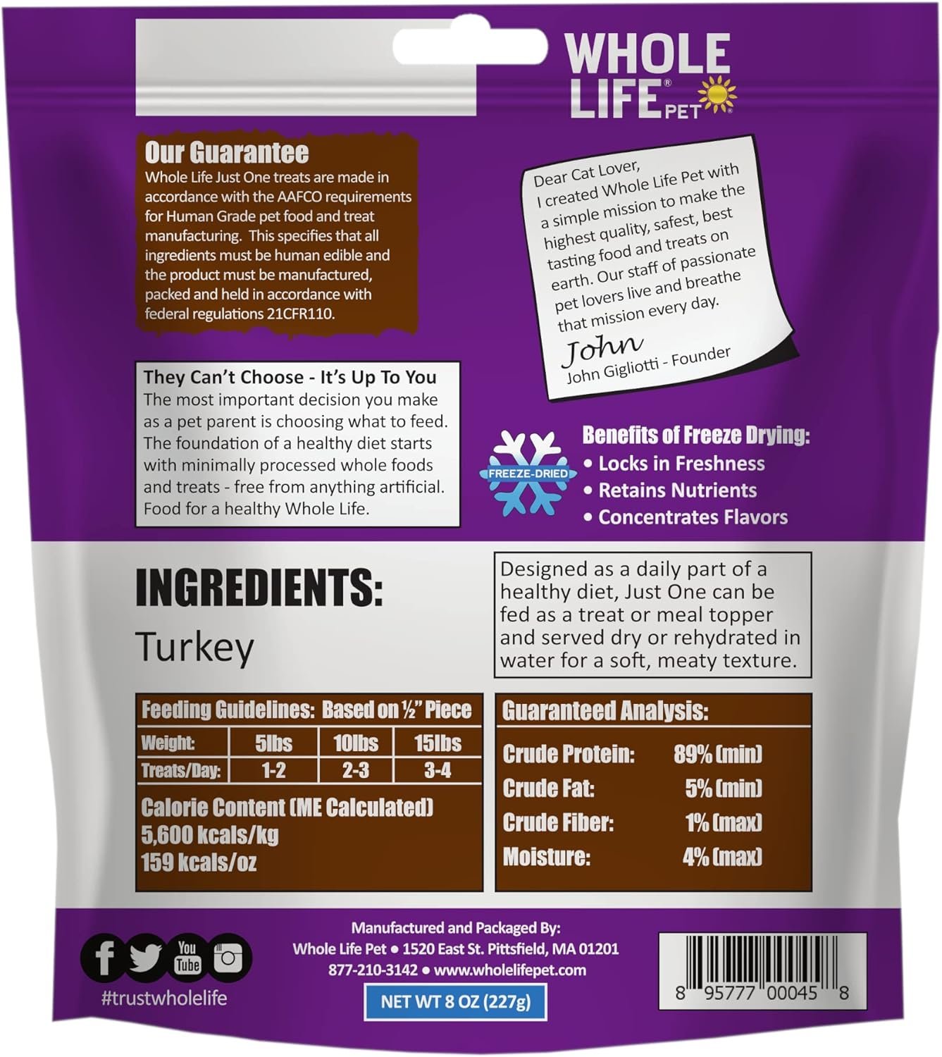 SOURCED AND MADE IN THE USA: USA Sourced Turkey. No outsourced manufacturing-Freeze Dried and packaged in house by Whole Life’s own Pet loving Staff