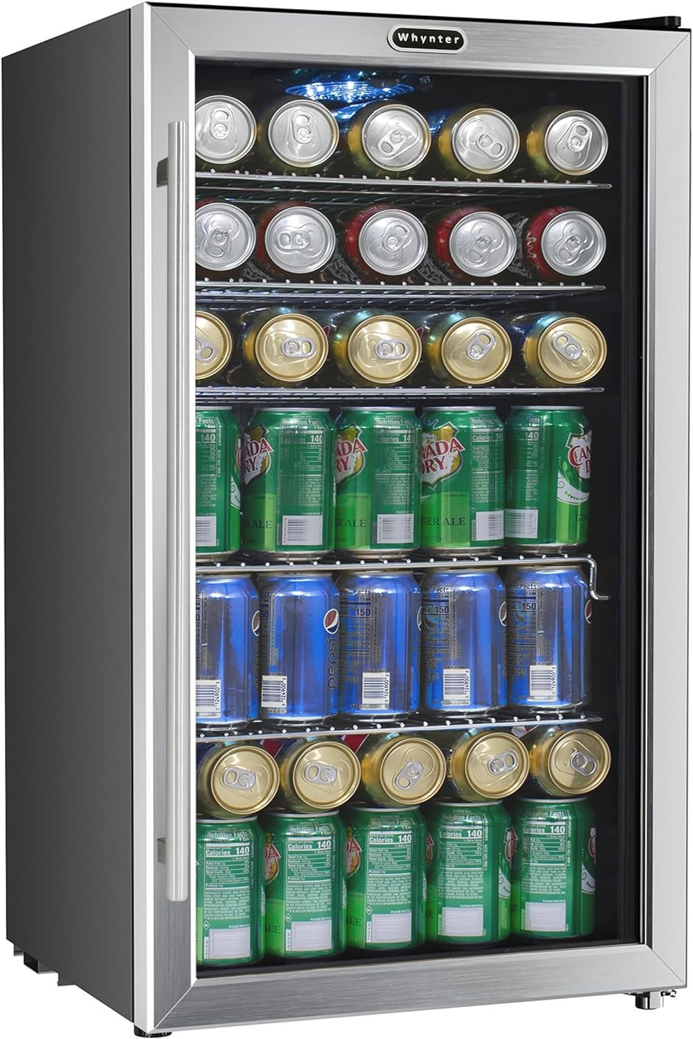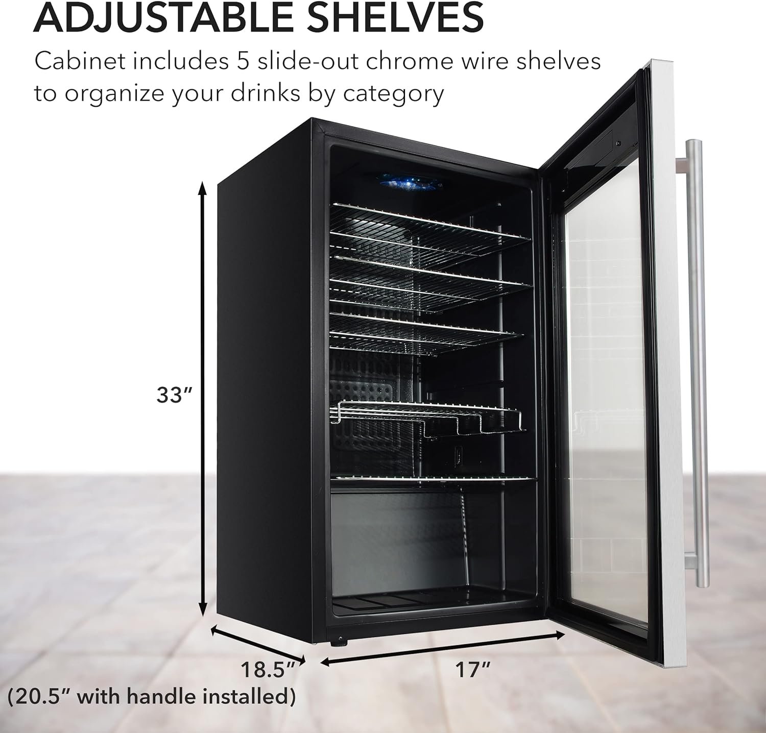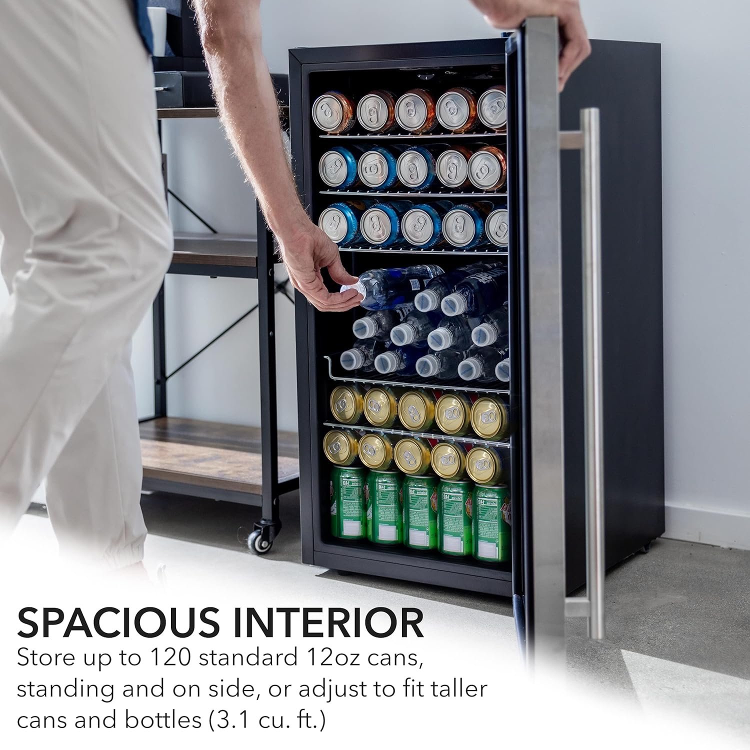 SPACIOUS INTERIOR: Freestanding 3.1 cu. ft. beverage cooler fridge built to store the most number of cans possible without wasting any space. Can hold up to 120 standard 12 oz. cans