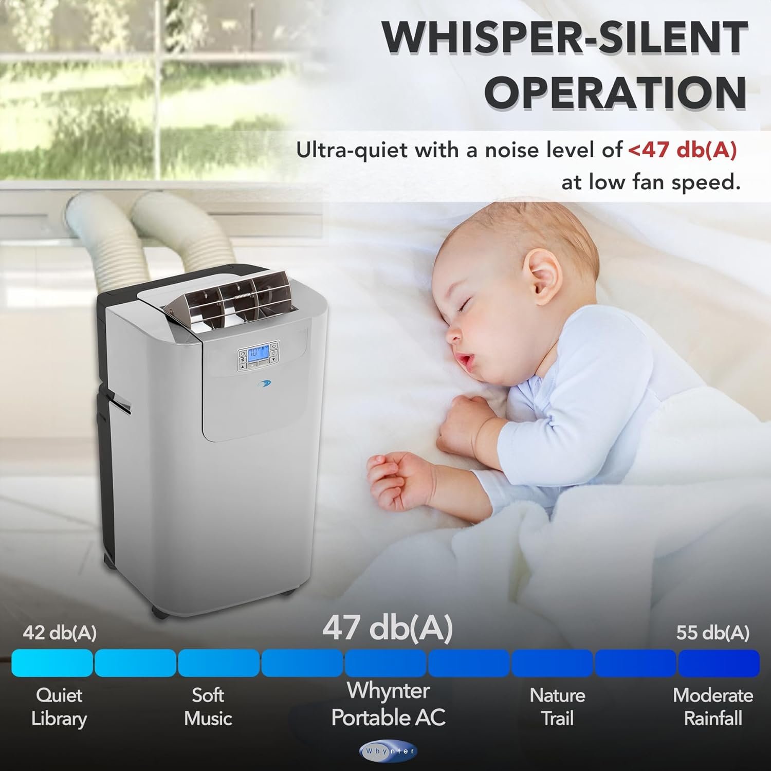 Powerful Yet Quiet: The ideal AC unit for bedrooms, this 12,000 BTU indoor air conditioner operates at 47 dBA in low speed and helps you stay cool while your limiting energy consumption; Made with the environment in mind, it runs off CFC-free R-32 refrigerant