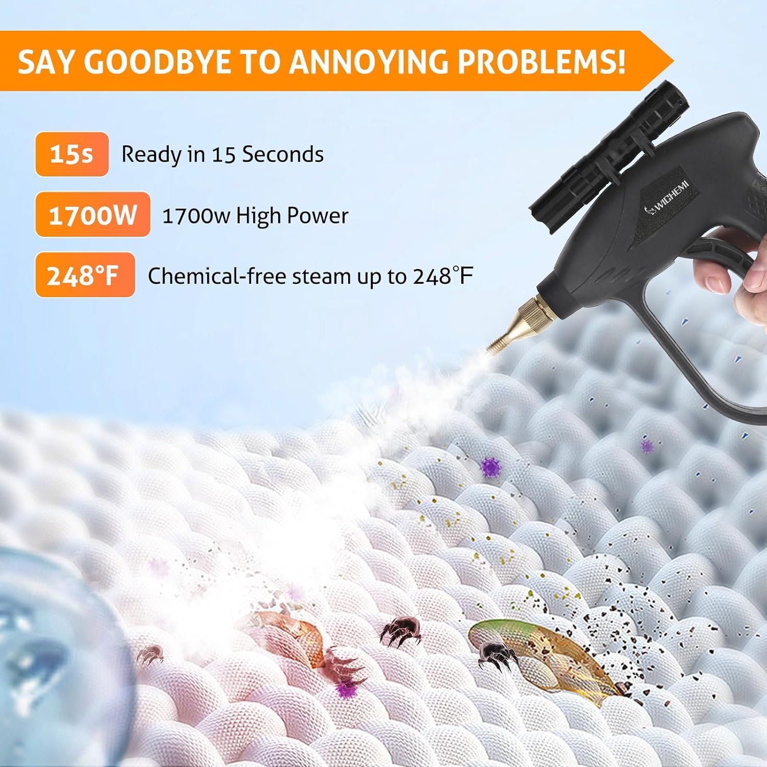 【1700W High Power】1700W high power can make the machine generate steams up to 120℃/248℉ in less than 15 seconds, to deeply clean and eliminate grease, grime, and stains from a wide range of surfaces. making your cleaning work more convenient and efficient.