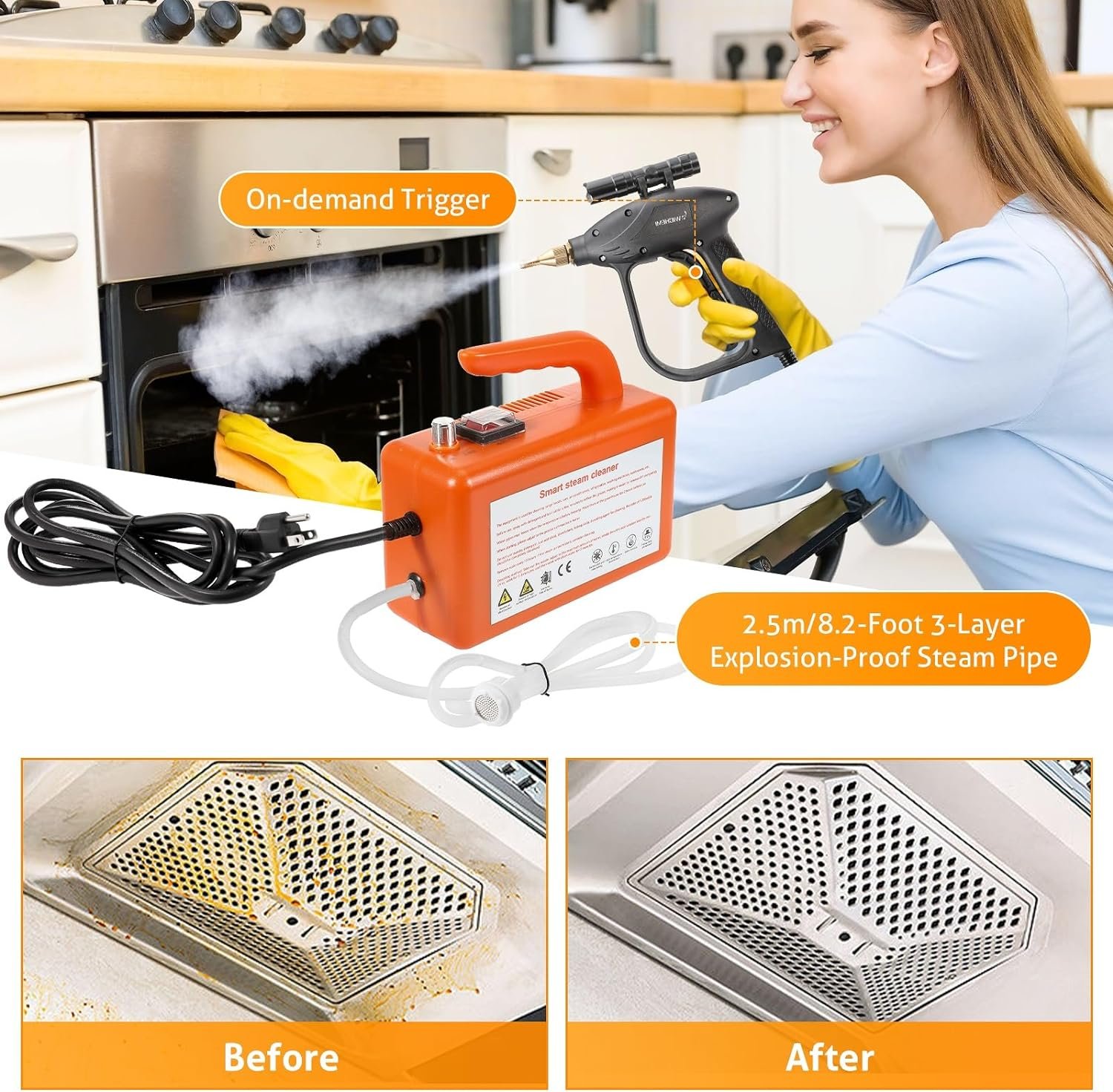【High Performance】Through the high-pressure high-temperature steam and strong spray force, the cleaning job is done perfectly. Easy to achieve natural oil removal, remove stains quickly and strongly, create a clean and comfortable living space. You can steam clean and refurbish your car, shower room, floor, electrical appliances, furniture, etc.