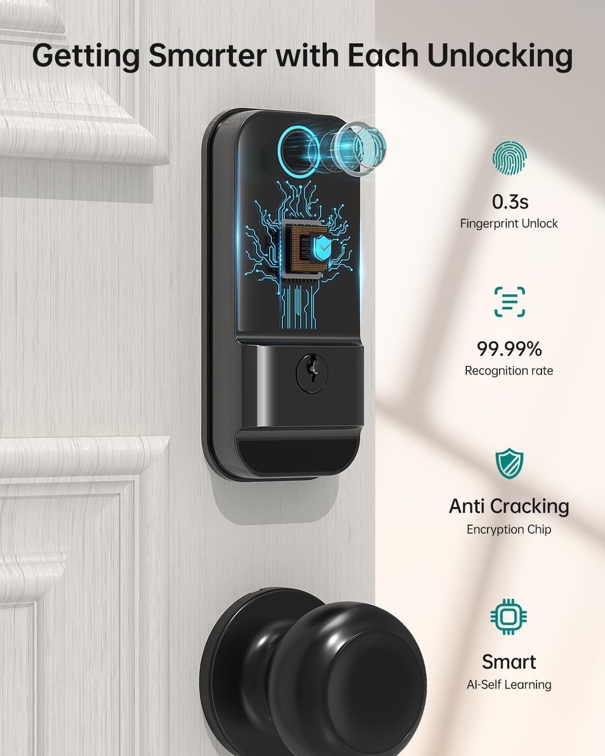 Elevate your home security effortlessly with our WiFi Keyless Entry Door Lock, equipped with 2 Knobs for added convenience. Embrace the ease of Keypad Code, Fob, Physical Key, 360° Fingerprint, Bluetooth App Control, and Alexa/Google Home Voice Control. Say goodbye to the worry of being locked out – experience the freedom of keyless entry and the assurance of a smart door lock that puts seamless access and security right at your fingertips! Upgrade your home security with confidence and convenience!